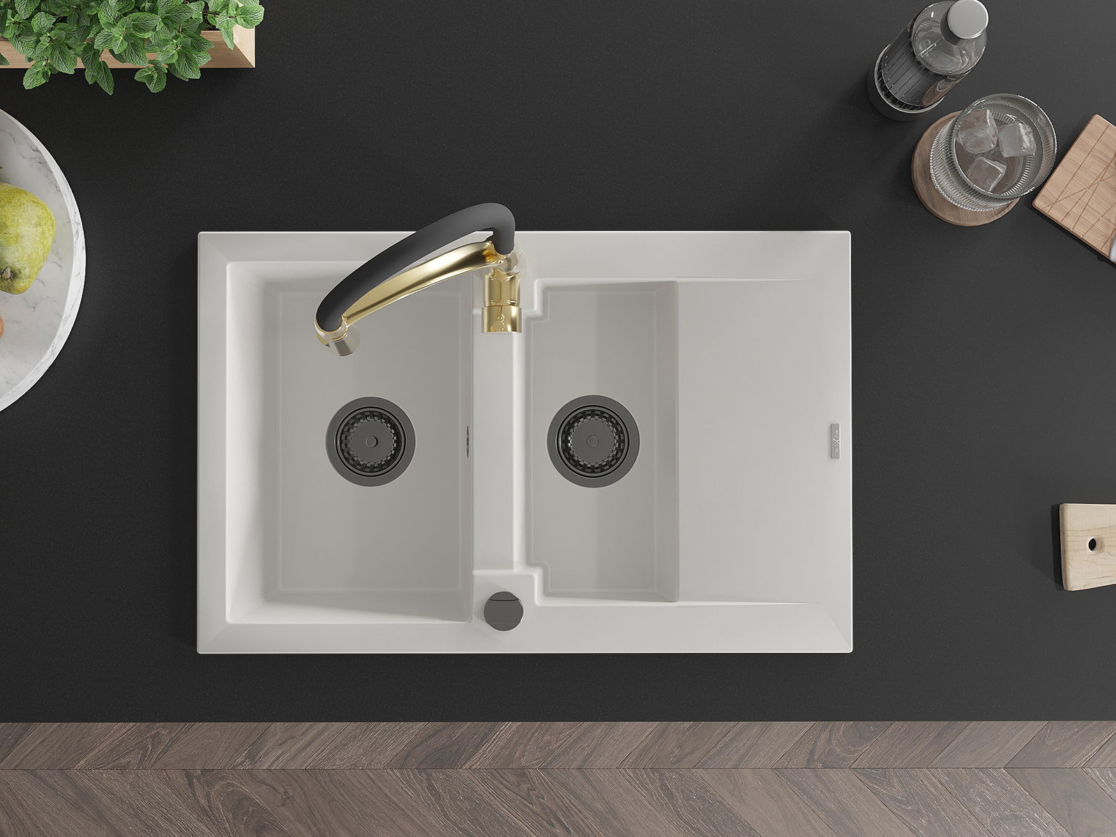 Povrch umývadla je odolný voči škvrnám a sfarbeniu, vďaka čomu sa ľahko čistí a zachováva si svoju farbu po dlhú dobu. Estetický a prakticky dopĺňajúci každú kuchyňu.