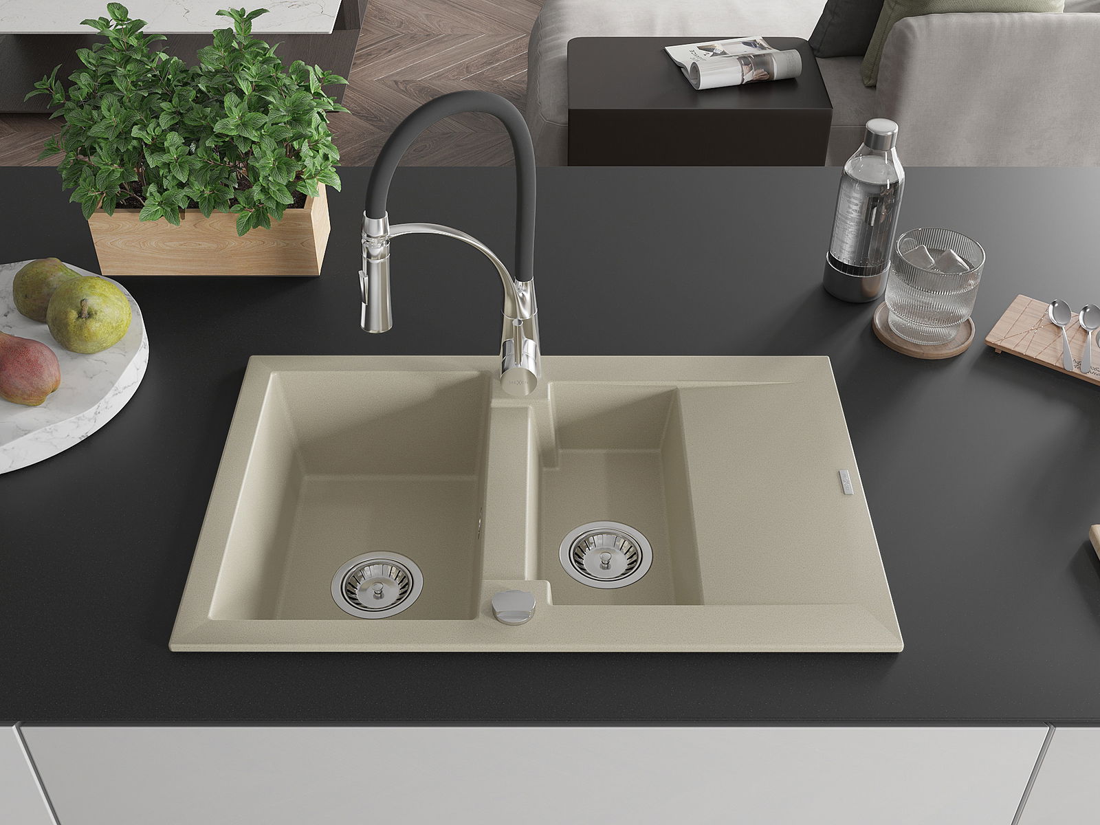 Povrch umývadla je odolný voči škvrnám a sfarbeniu, vďaka čomu sa ľahko čistí a zachováva si svoju farbu po dlhú dobu. Estetický a prakticky dopĺňajúci každú kuchyňu.