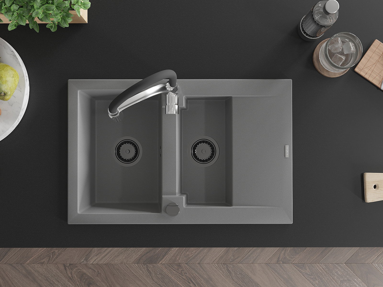 Povrch umývadla je odolný voči škvrnám a sfarbeniu, vďaka čomu sa ľahko čistí a zachováva si svoju farbu po dlhú dobu. Estetický a prakticky dopĺňajúci každú kuchyňu.