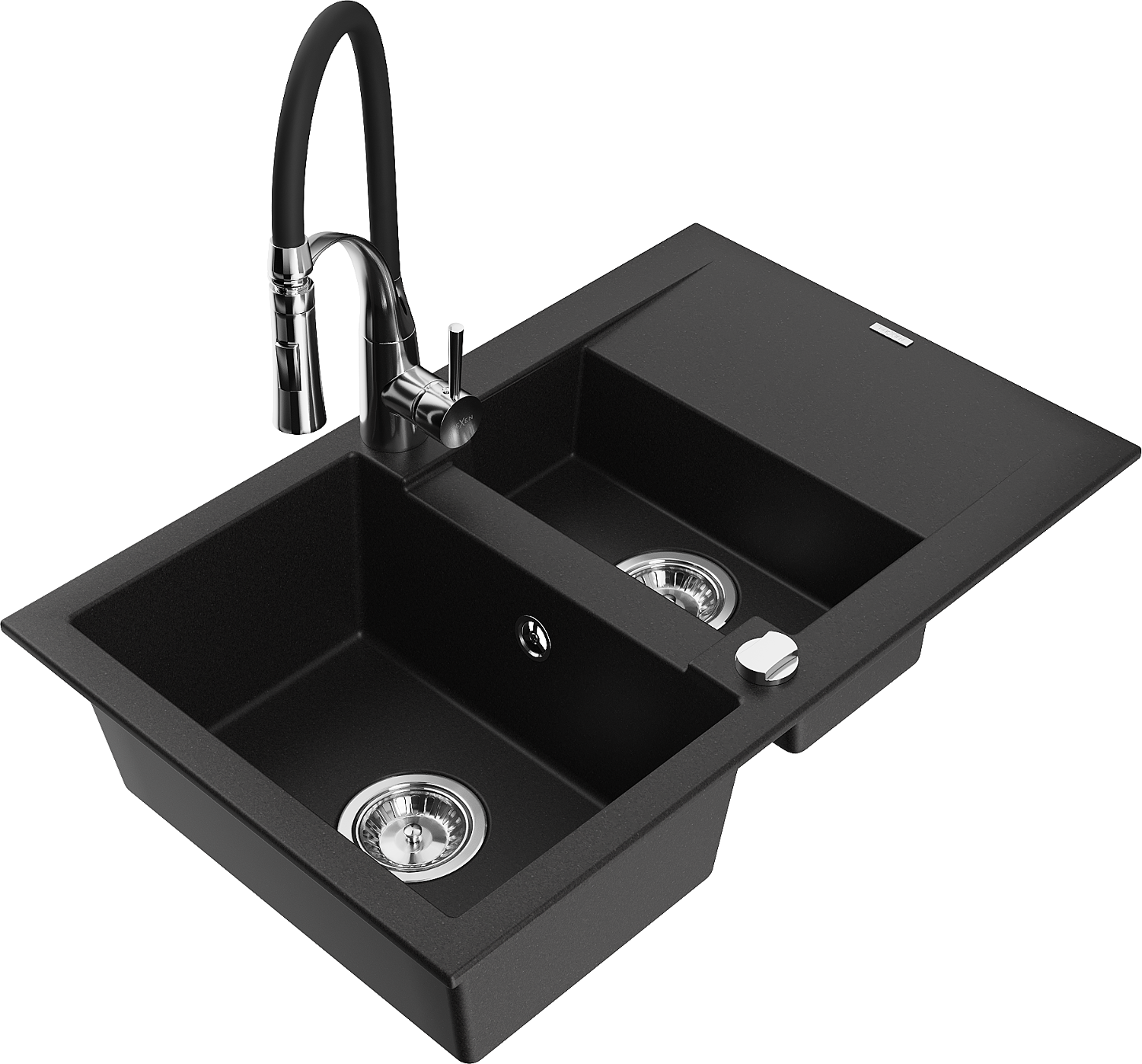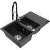 Mexen Gaspar granitový drez 1,5-komorový s odkvapávačom a kuchynskou batériou Aster, čierny - 6507-77-73450-07