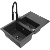 Mexen Gaspar granitový drez 1,5-komorový s odkvapkávačom a kuchynskou batériou Aster, čierny - 6507-77-73450-57-B