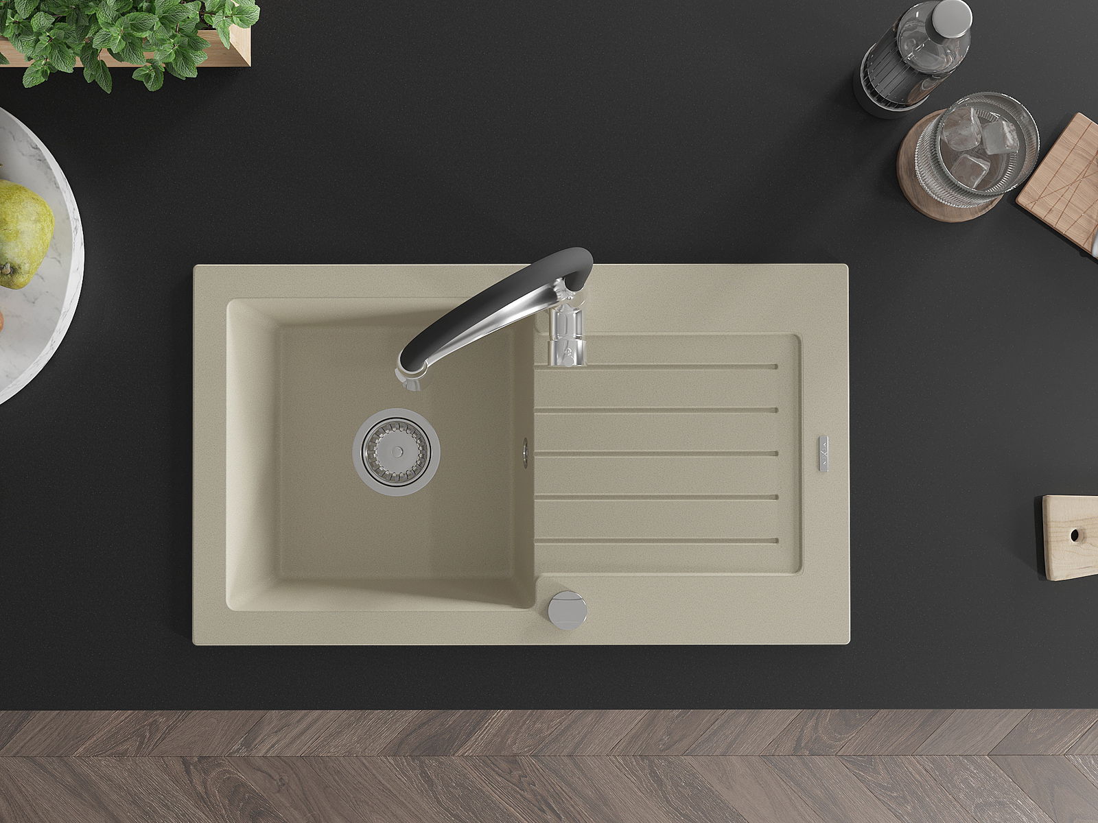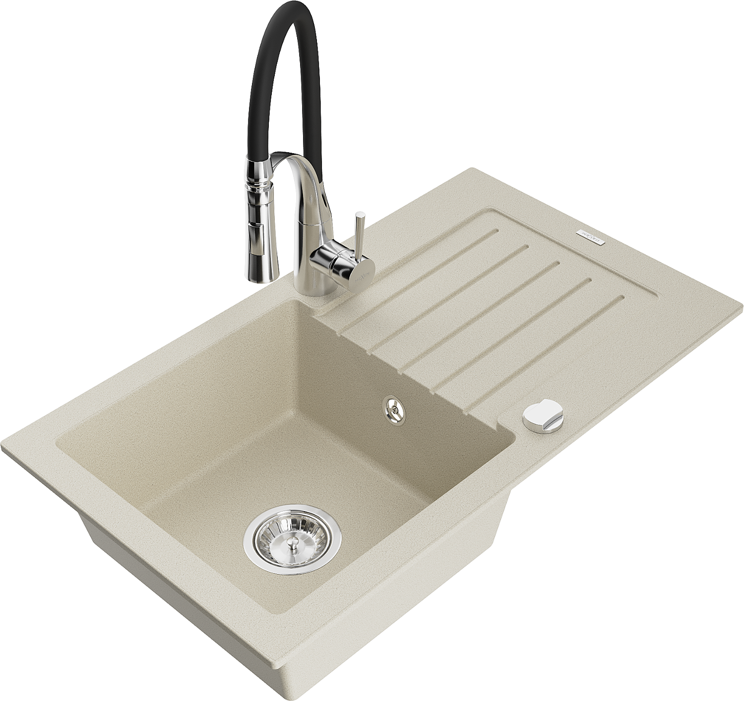 Mexen Pablo granitový kuchynský drez 1-komorový s odkvapkávačom a kuchynskou batériou Aster, béžový - 6510-69-73450-07