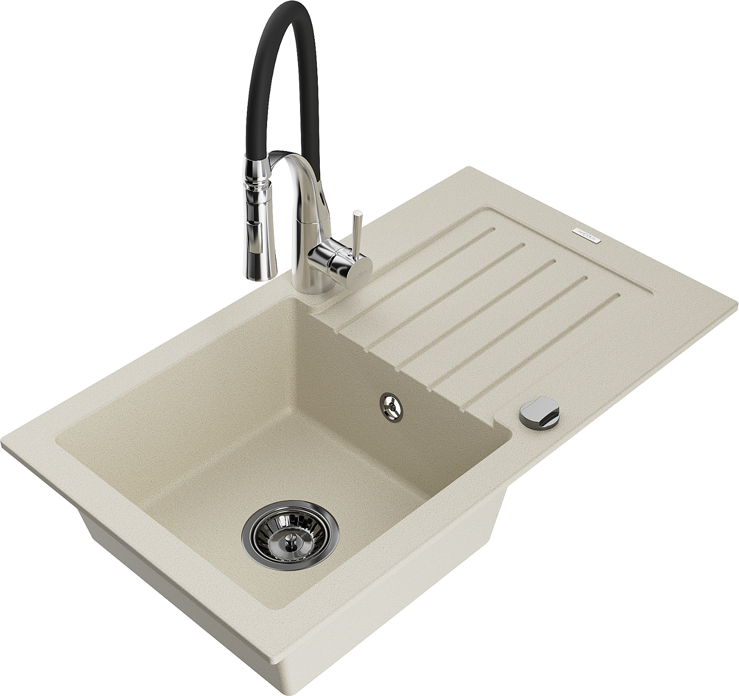 Mexen Pablo granitový drez 1-komorový s odkvapkávačom a kuchynská batéria Aster, béžový - 6510-69-73450-07-B