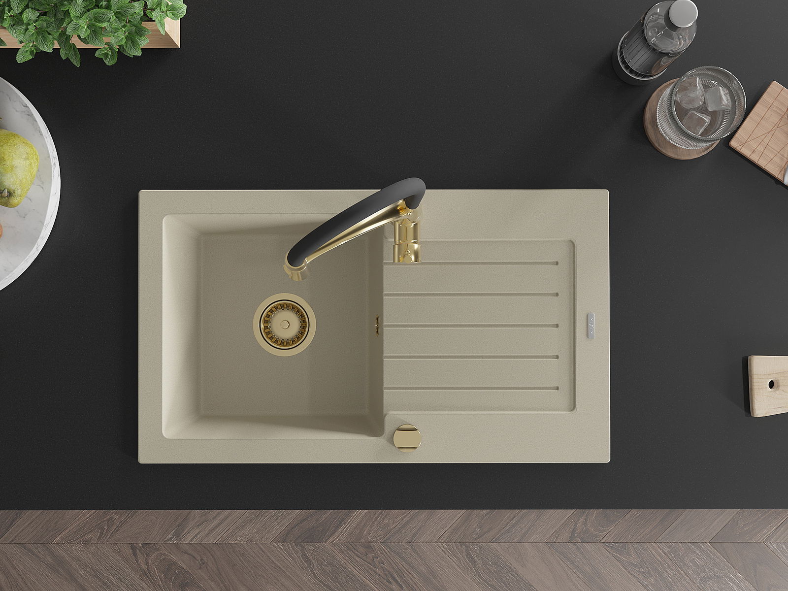 Mexen Pablo žulový kuchynský drez s 1 komorou, odkvapkávacia plocha a kuchynská batéria Aster, béžový - 6510-69-73450-57-G