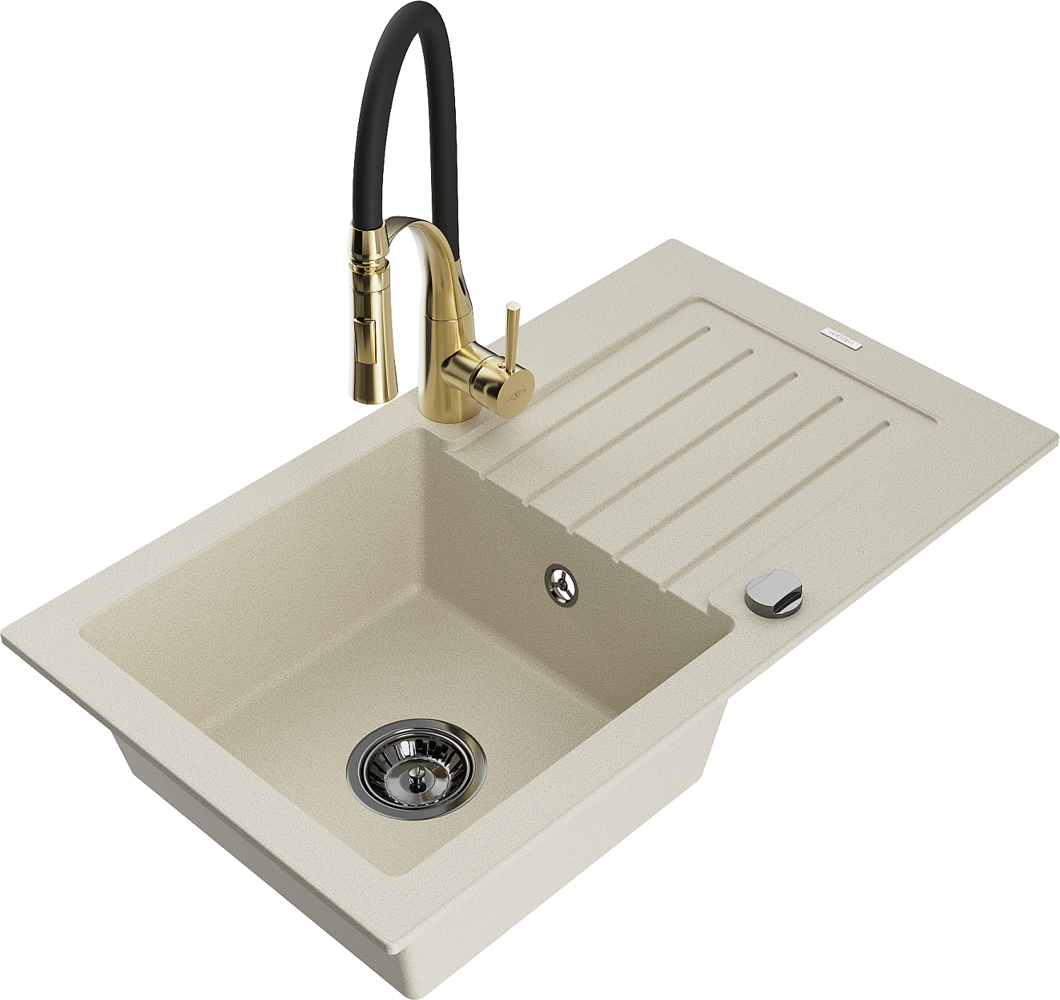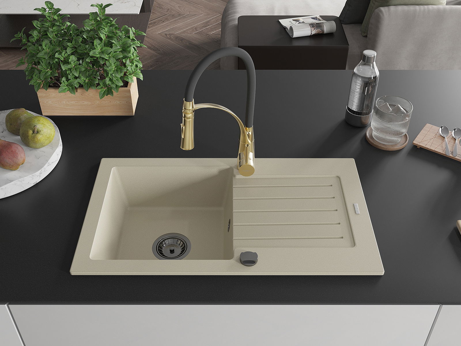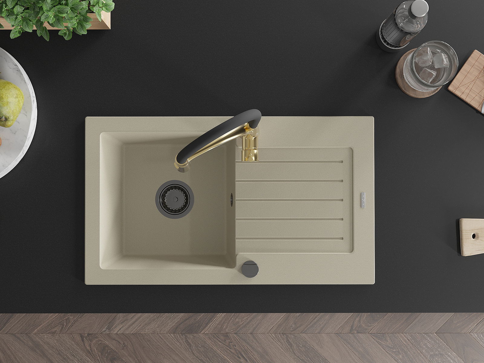 Mexen Pablo žulový kuchynský drez s 1 komorou s odkvapkávačom a kuchynskou batériou Aster, béžový - 6510-69-73450-57-B