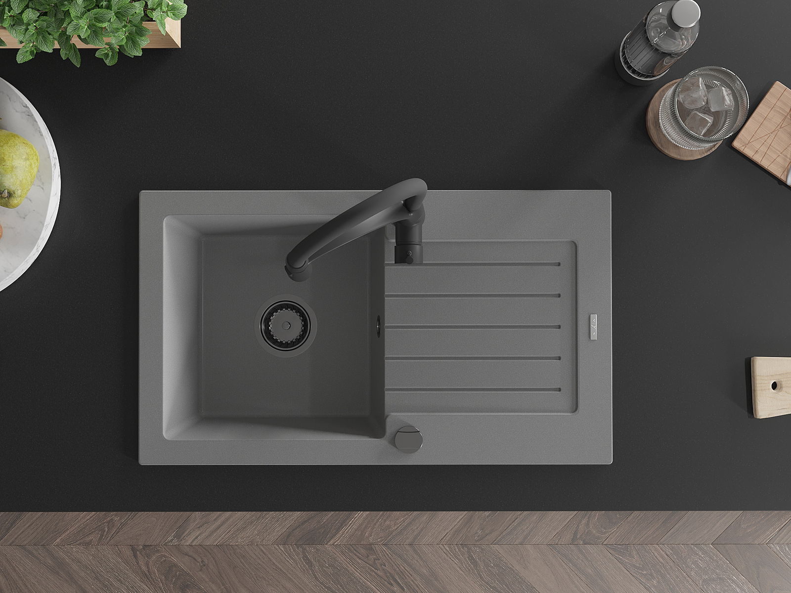 Povrch umývadla je odolný voči škvrnám a sfarbeniu, vďaka čomu sa ľahko čistí a zachováva si svoju farbu po dlhú dobu. Estetický a prakticky dopĺňajúci každú kuchyňu.