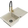 Povrch kuchynského drezu je odolný voči škvrnám a zafarbeniu, vďaka čomu sa ľahko udržiava a zachováva svoju farbu počas dlhého obdobia používania. Estetický a praktický doplnok pre každú kuchyňu.