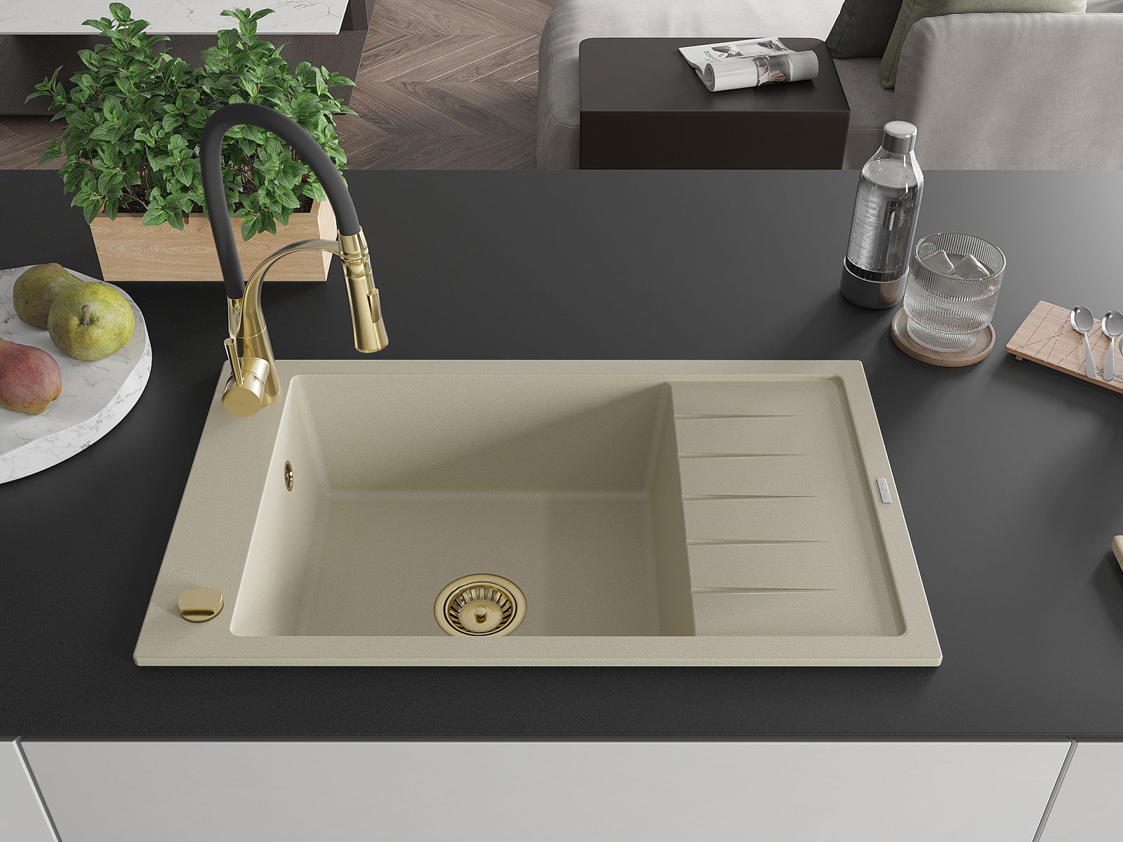 Povrch umývadla je odolný voči škvrnám a sfarbeniu, vďaka čomu sa ľahko čistí a zachováva si svoju farbu po dlhú dobu. Estetický a prakticky dopĺňajúci každú kuchyňu.