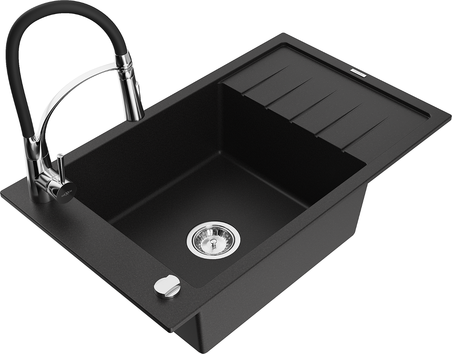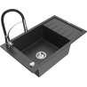Mexen Elias žulový drez s 1 komorou s odkvapkávačom a kuchynskou batériou Aster, čierny - 6511-77-73450-07