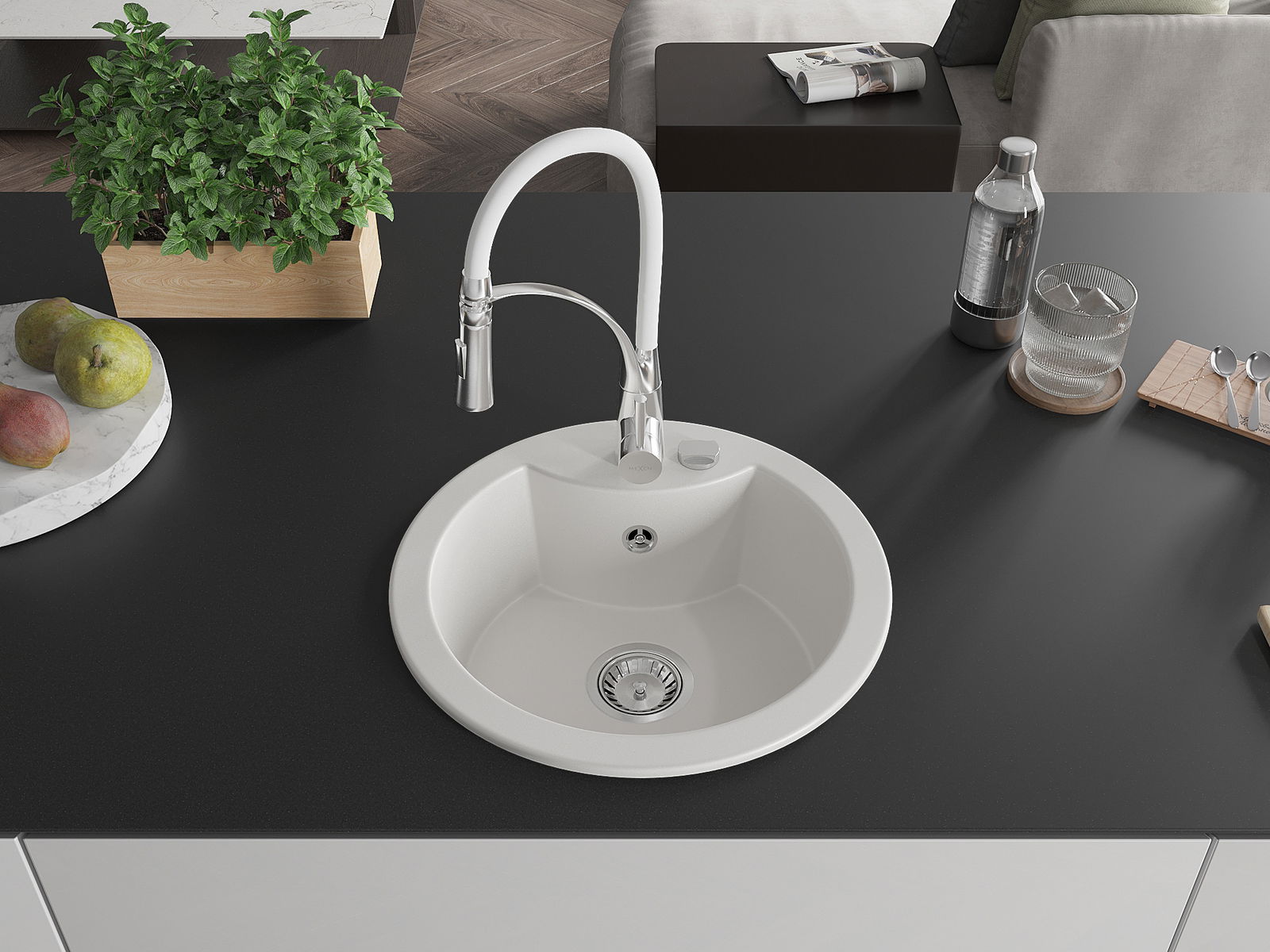 Povrch umývadla je odolný voči škvrnám a sfarbeniu, vďaka čomu sa ľahko čistí a zachováva si svoju farbu po dlhú dobu. Estetický a prakticky dopĺňajúci každú kuchyňu.