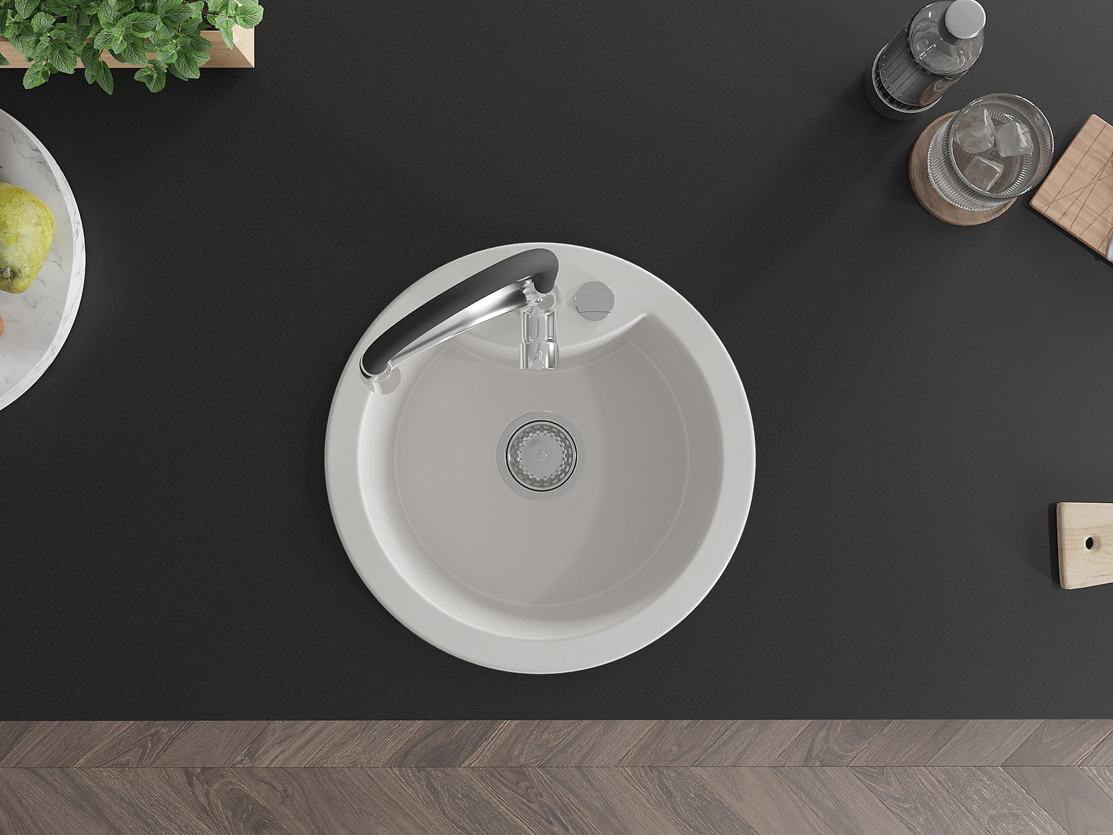 Povrch umývadla je odolný voči škvrnám a sfarbeniu, vďaka čomu sa ľahko čistí a zachováva si svoju farbu po dlhú dobu. Estetický a prakticky dopĺňajúci každú kuchyňu.