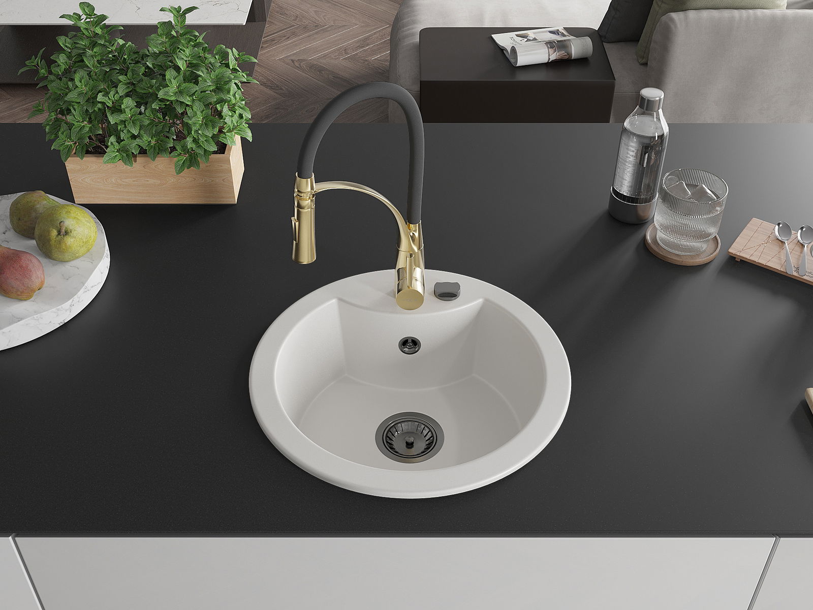 Povrch umývadla je odolný voči škvrnám a sfarbeniu, vďaka čomu sa ľahko čistí a zachováva si svoju farbu po dlhú dobu. Estetický a prakticky dopĺňajúci každú kuchyňu.