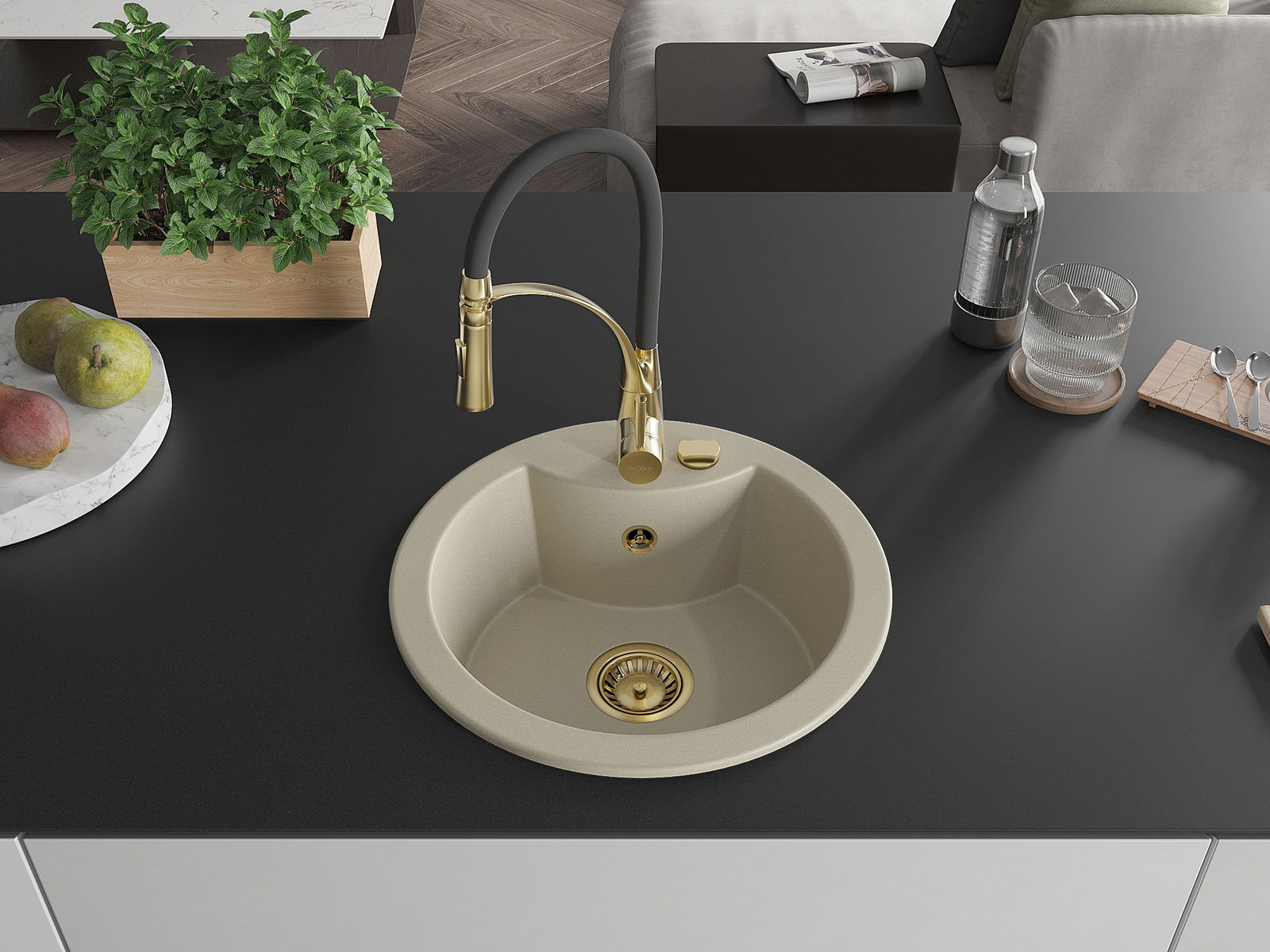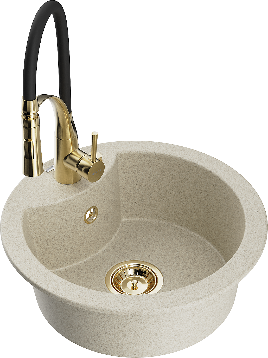 Mexen Diego žulový jednodrez s kuchynskou batériou Aster, béžový - 6512-69-73450-57-G