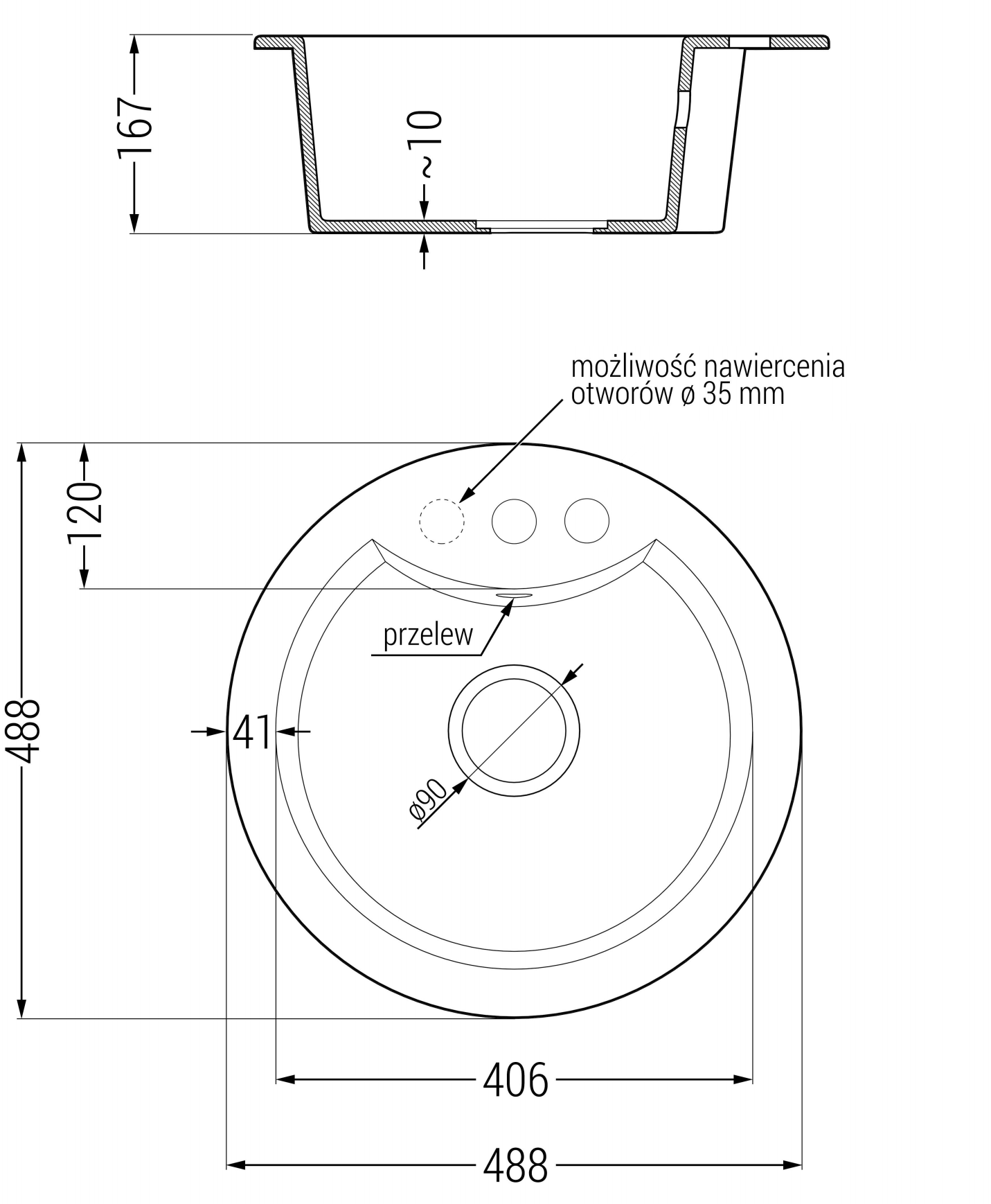 Drez má predfrézovaný otvor s priemerom 35 mm na samostatné prerazenie. Môže sa využiť napríklad na montáž dávkovača na tekutinu, ktorý eliminuje prítomnosť plastových fliaš v kuchyni a pridáva jej elegantné dokončenie.