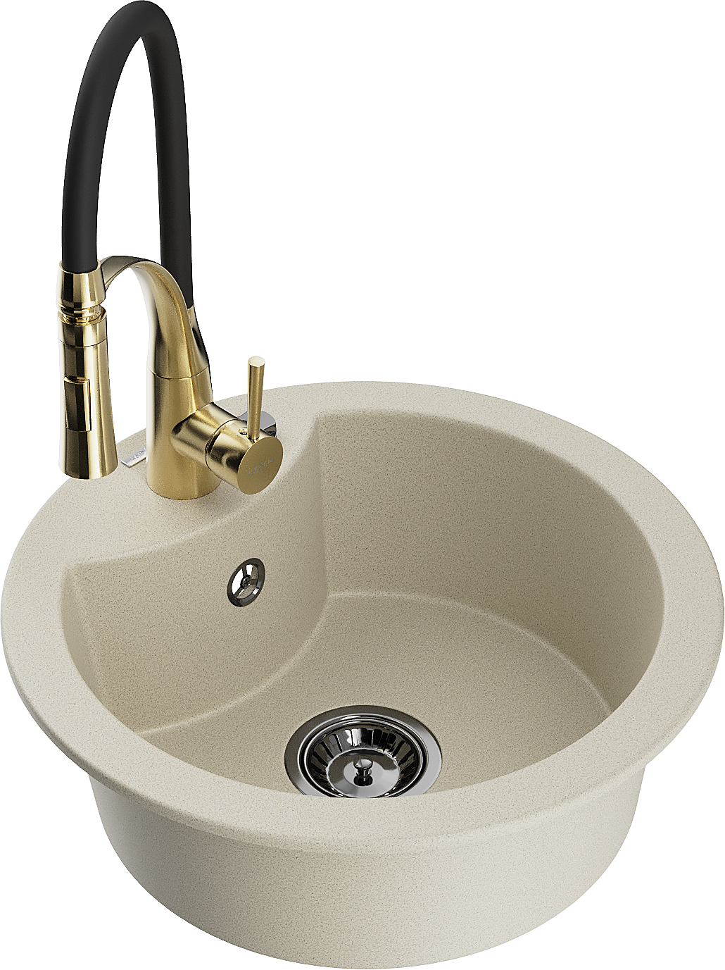 Mexen Diego granitový drez 1-komorový s kuchynskou batériou Aster, béžový - 6512-69-73450-57-B