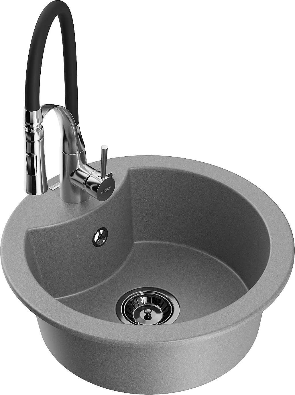 Mexen Diego granitový drez s 1 komorou s kuchynskou batériou Aster, šedý - 6512-71-73450-07-B