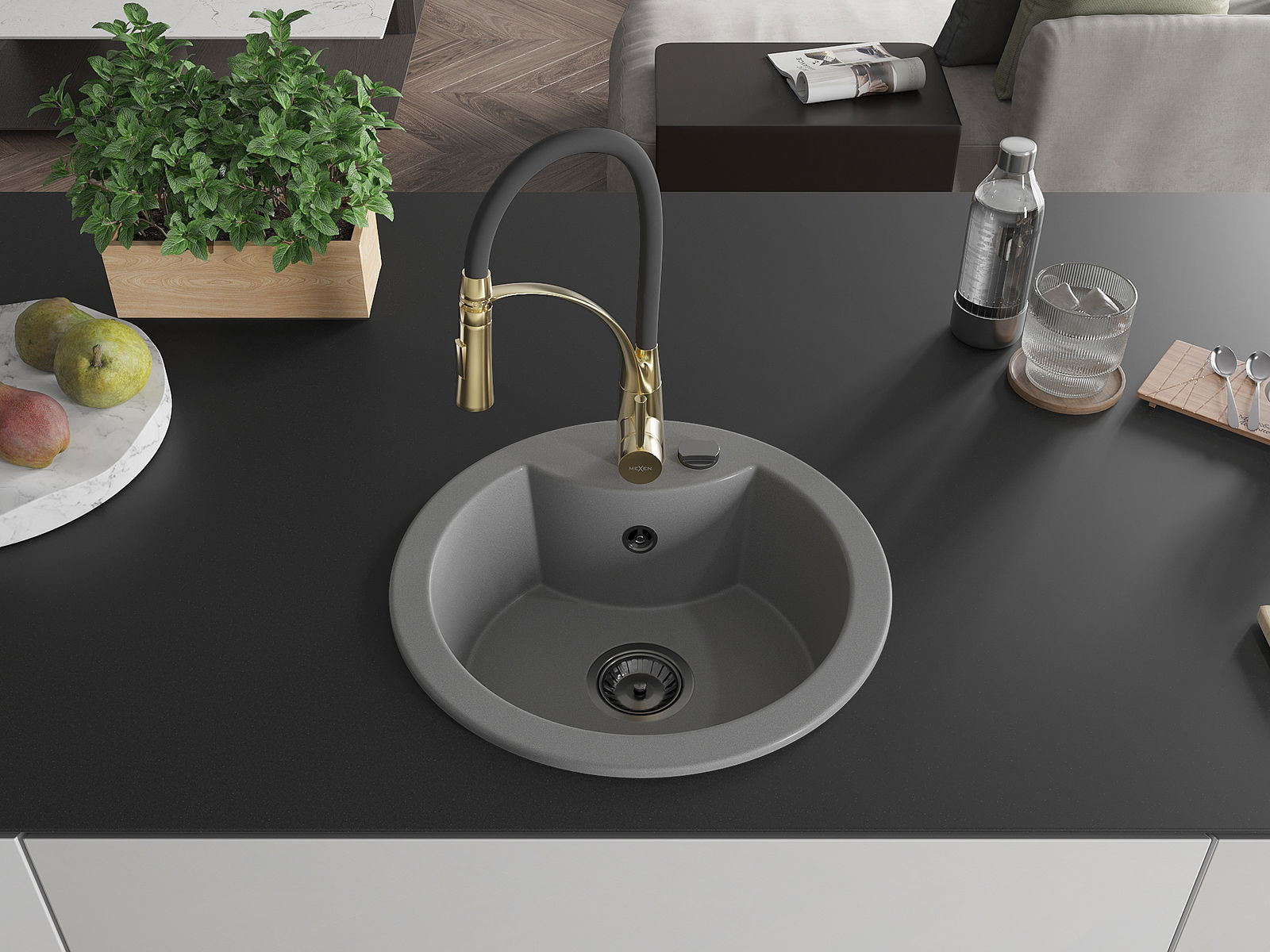 Povrch umývadla je odolný voči škvrnám a sfarbeniu, vďaka čomu sa ľahko čistí a zachováva si svoju farbu po dlhú dobu. Estetický a prakticky dopĺňajúci každú kuchyňu.