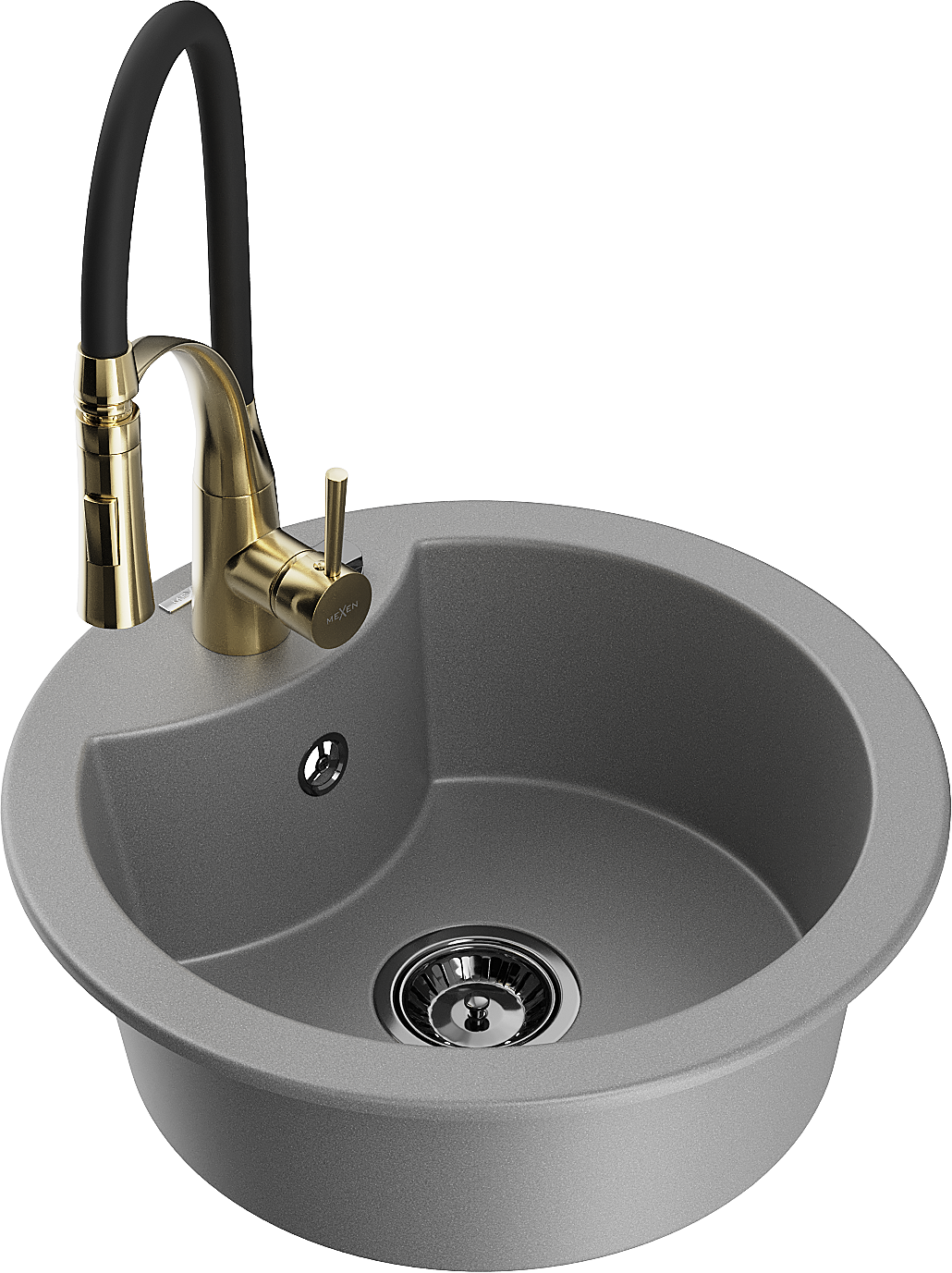 Mexen Diego žulový drez 1-komorový s kuchynskou batériou Aster, sivý - 6512-71-73450-57-B