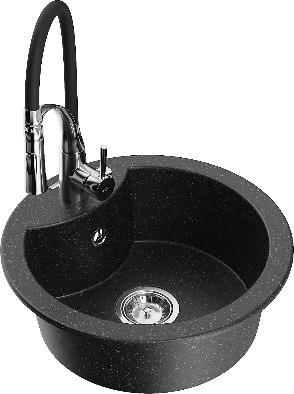 Mexen Diego žulový drez 1-komorový s kuchynskou batériou Aster, čierny/strieborný metalik - 6512-73-73450-07