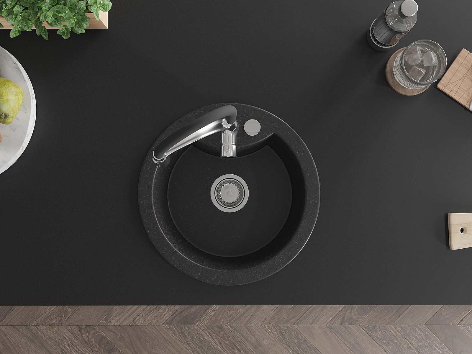 Povrch umývadla je odolný voči škvrnám a sfarbeniu, vďaka čomu sa ľahko čistí a zachováva si svoju farbu po dlhú dobu. Estetický a prakticky dopĺňajúci každú kuchyňu.