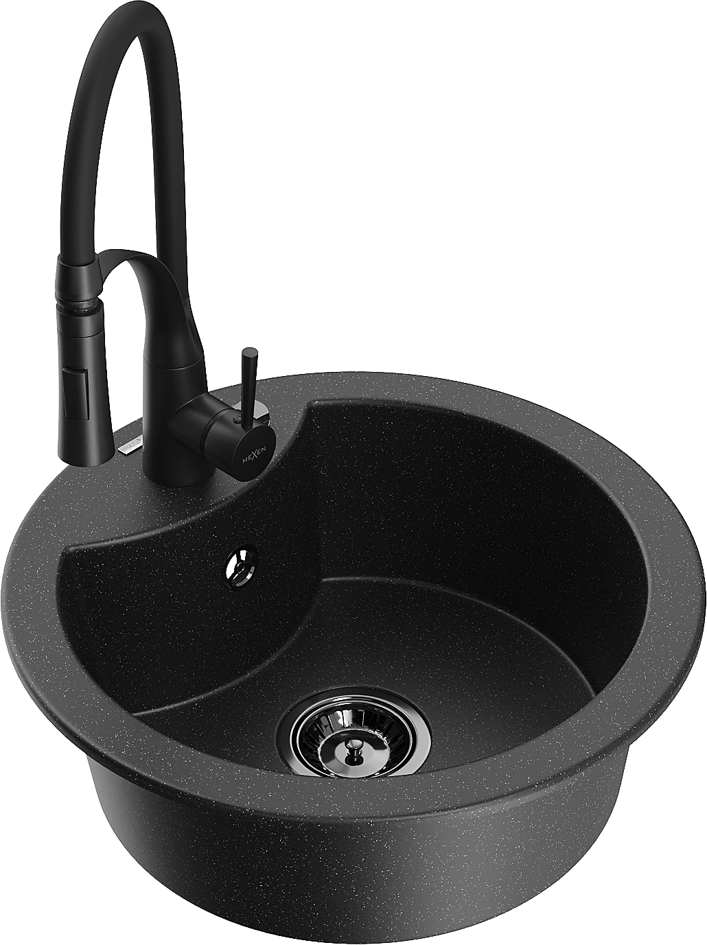 Mexen Diego žulový kuchynský drez s 1 komorou a kuchynskou batériou Aster, čierny/strieborný metalik - 6512-73-73450-70-B
