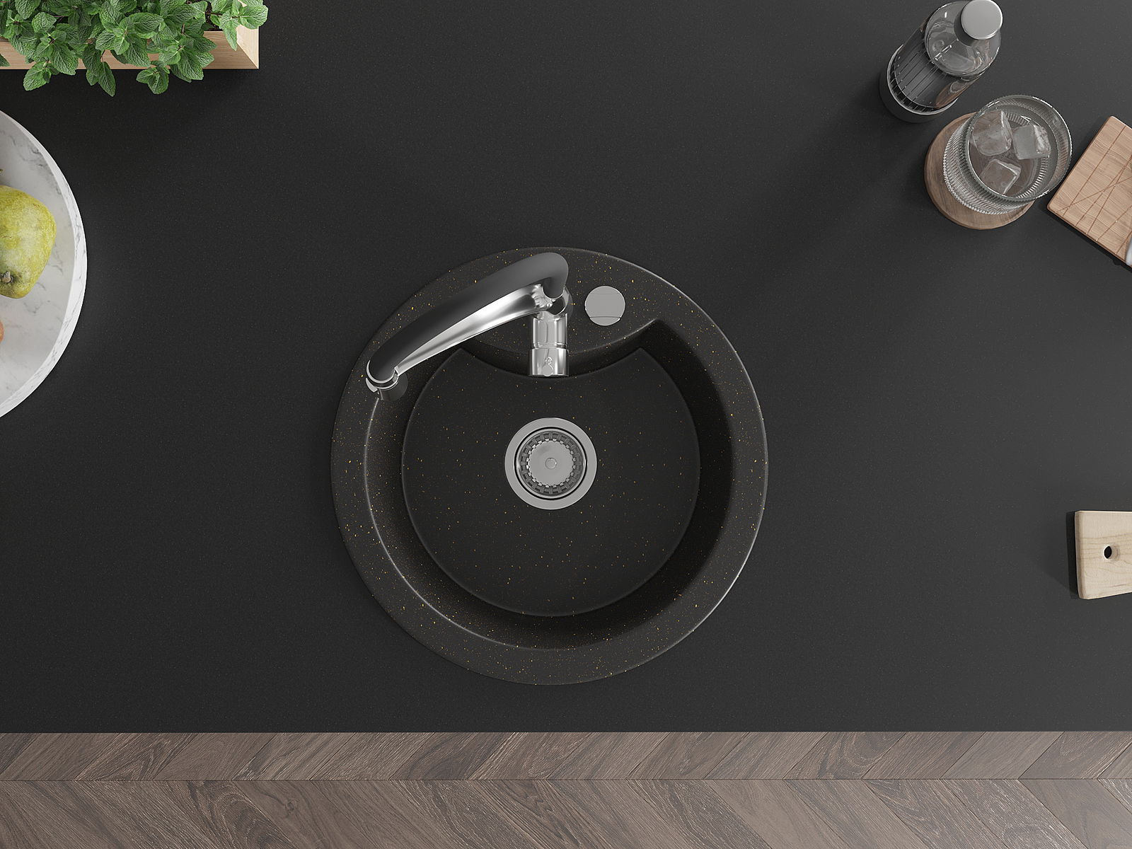 Povrch kuchynského drezu je odolný voči škvrnám a zafarbeniu, vďaka čomu sa ľahko udržiava a zachováva svoju farbu počas dlhého obdobia používania. Estetický a praktický doplnok pre každú kuchyňu.