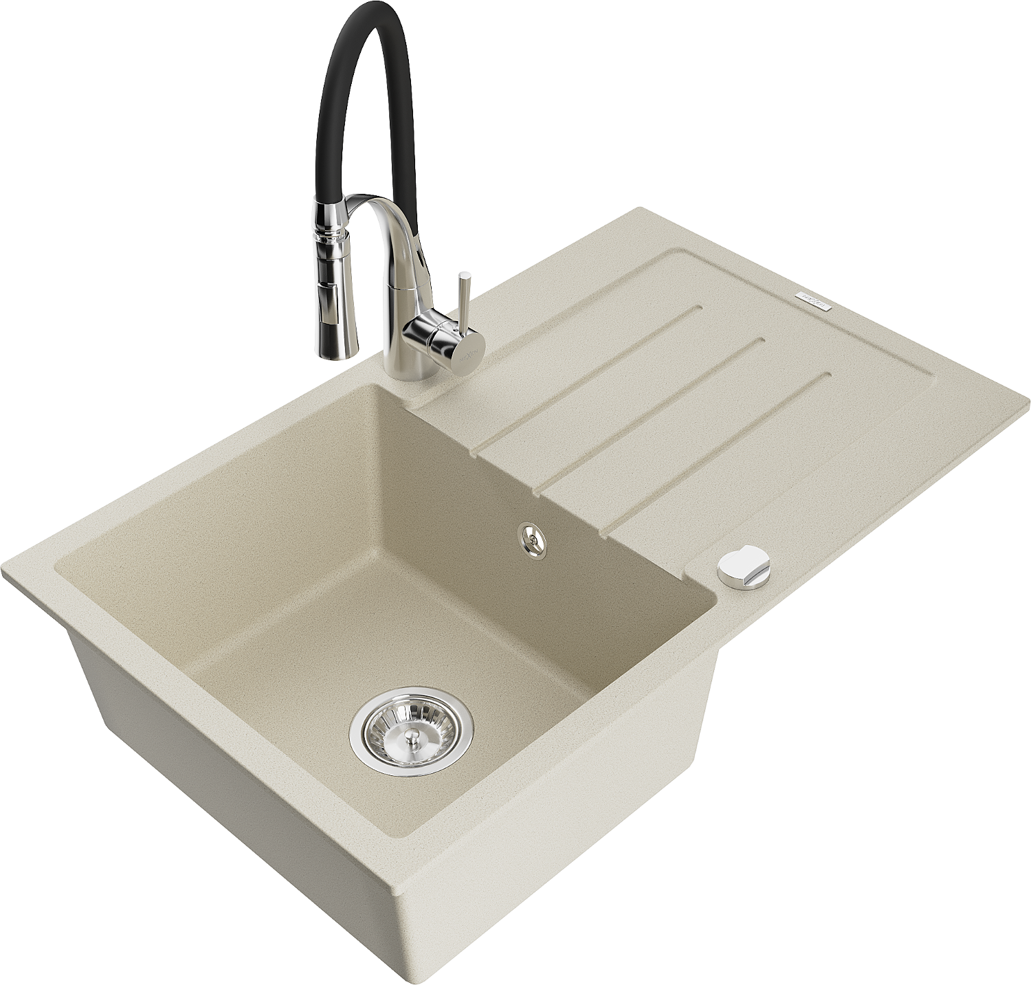 Mexen Bruno žulový drez s odkvapkávačom a kuchynskou batériou Aster, béžový - 6513-69-73450-07