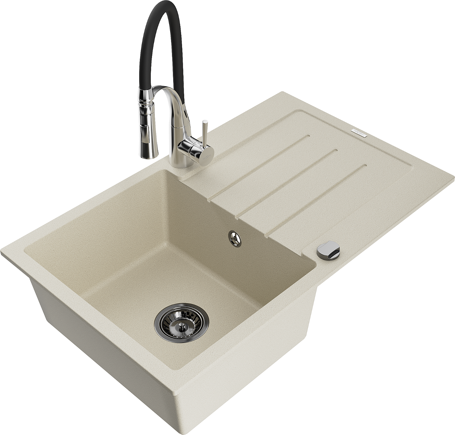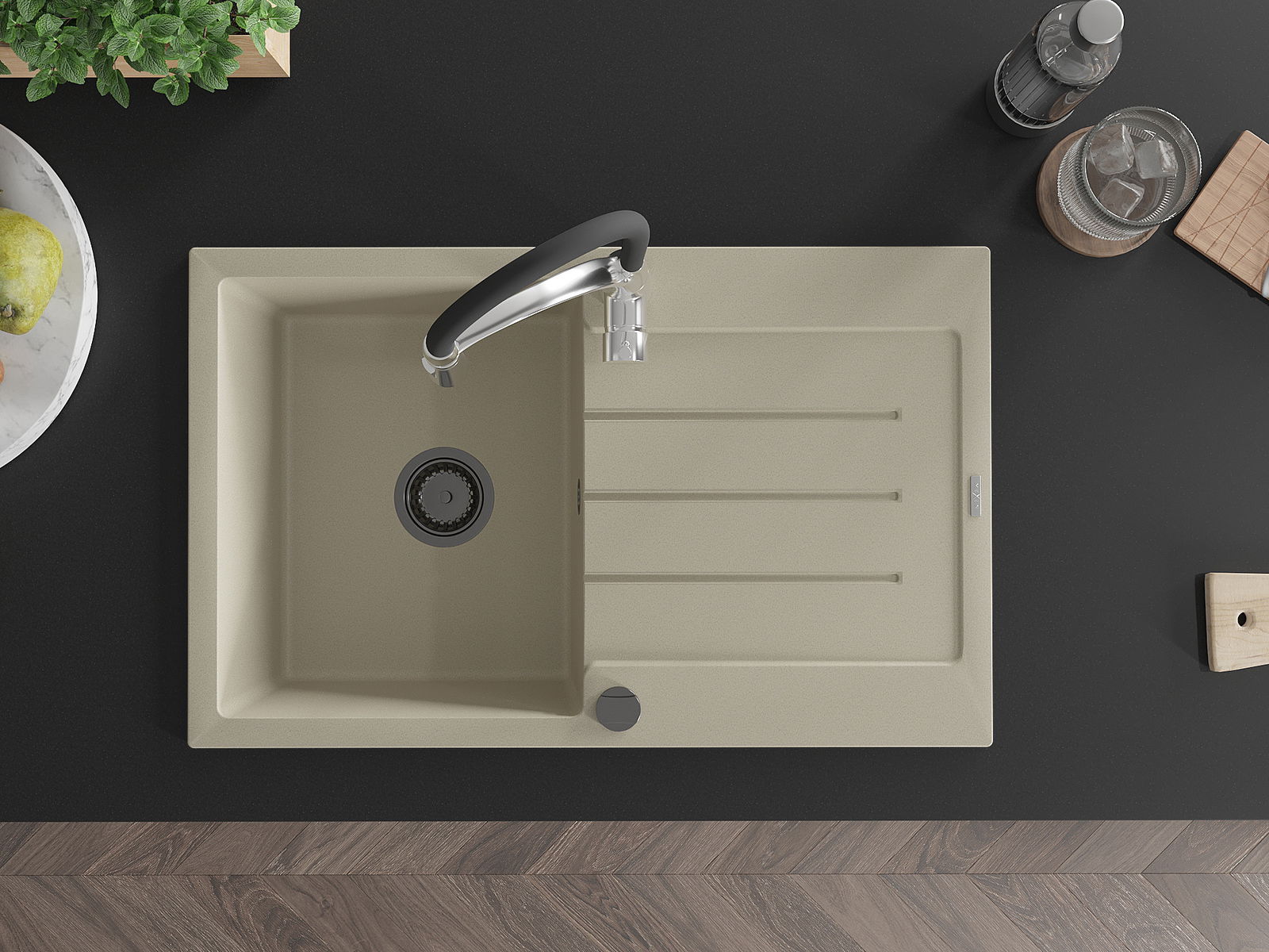 Mexen Bruno 1-komorový žulový drez s odkvapkávačom a kuchynskou batériou Aster, béžový - 6513-69-73450-07-B