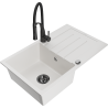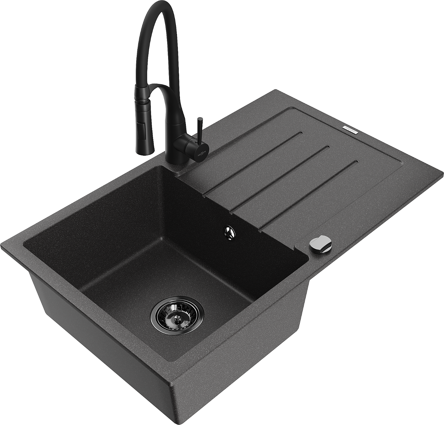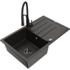 Mexen Bruno žulový kuchynský drez 1-komorový s odkvapom a kuchynskou batériou Aster, čierny škvrnitý - 6513-76-73450-70-B