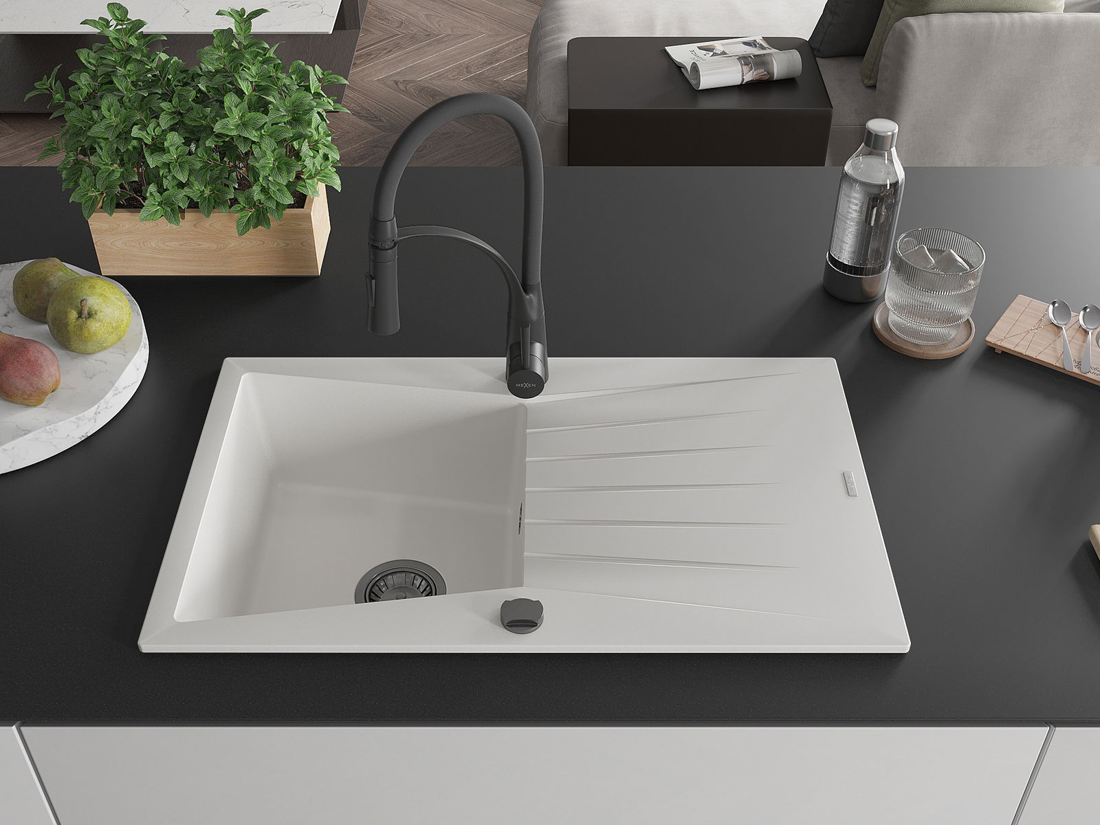 Povrch umývadla je odolný voči škvrnám a sfarbeniu, vďaka čomu sa ľahko čistí a zachováva si svoju farbu po dlhú dobu. Estetický a prakticky dopĺňajúci každú kuchyňu.