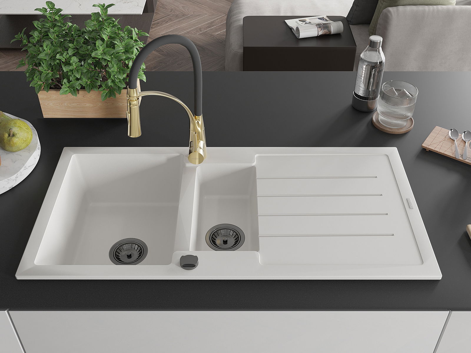 Povrch umývadla je odolný voči škvrnám a sfarbeniu, vďaka čomu sa ľahko čistí a zachováva si svoju farbu po dlhú dobu. Estetický a prakticky dopĺňajúci každú kuchyňu.