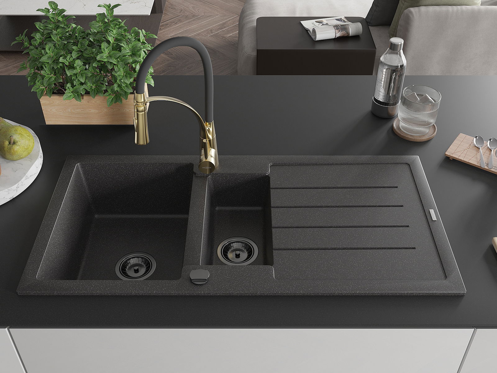 Povrch umývadla je odolný voči škvrnám a sfarbeniu, vďaka čomu sa ľahko čistí a zachováva si svoju farbu po dlhú dobu. Estetický a prakticky dopĺňajúci každú kuchyňu.