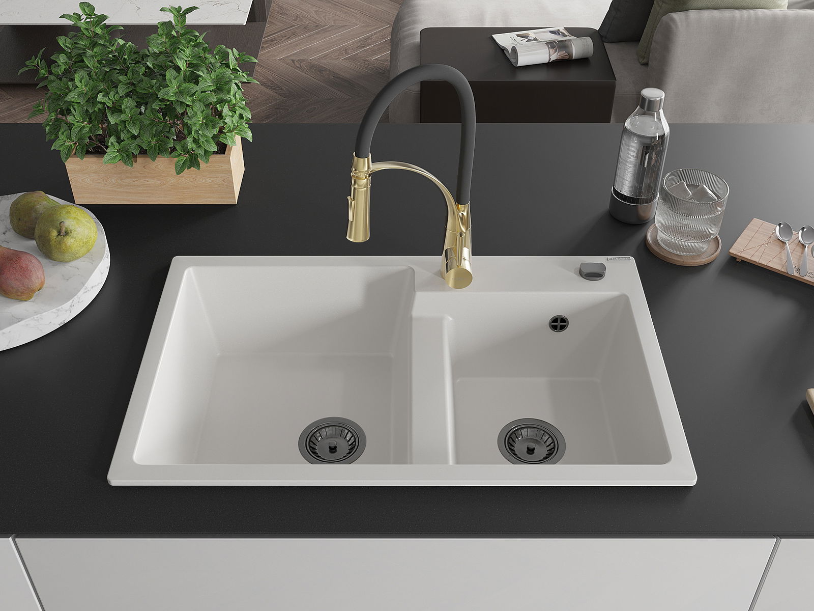 Povrch umývadla je odolný voči škvrnám a sfarbeniu, vďaka čomu sa ľahko čistí a zachováva si svoju farbu po dlhú dobu. Estetický a prakticky dopĺňajúci každú kuchyňu.