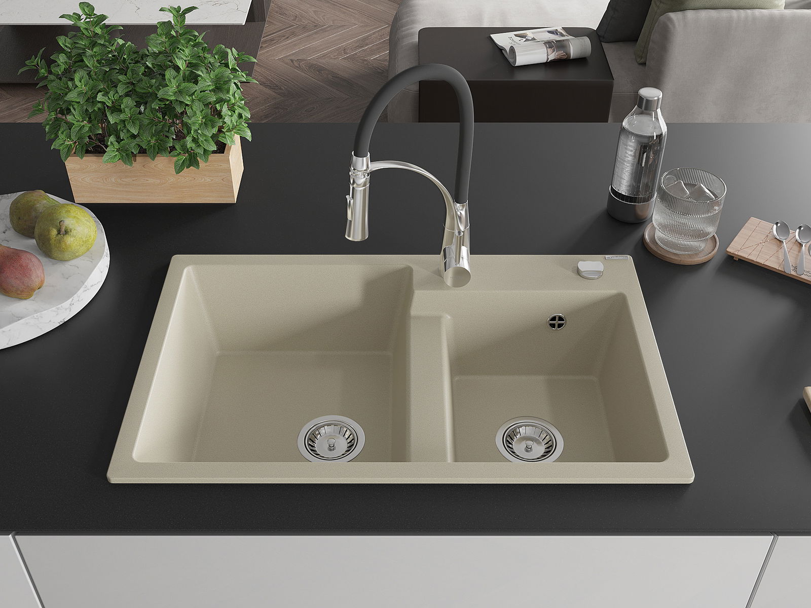 Povrch umývadla je odolný voči škvrnám a sfarbeniu, vďaka čomu sa ľahko čistí a zachováva si svoju farbu po dlhú dobu. Estetický a prakticky dopĺňajúci každú kuchyňu.