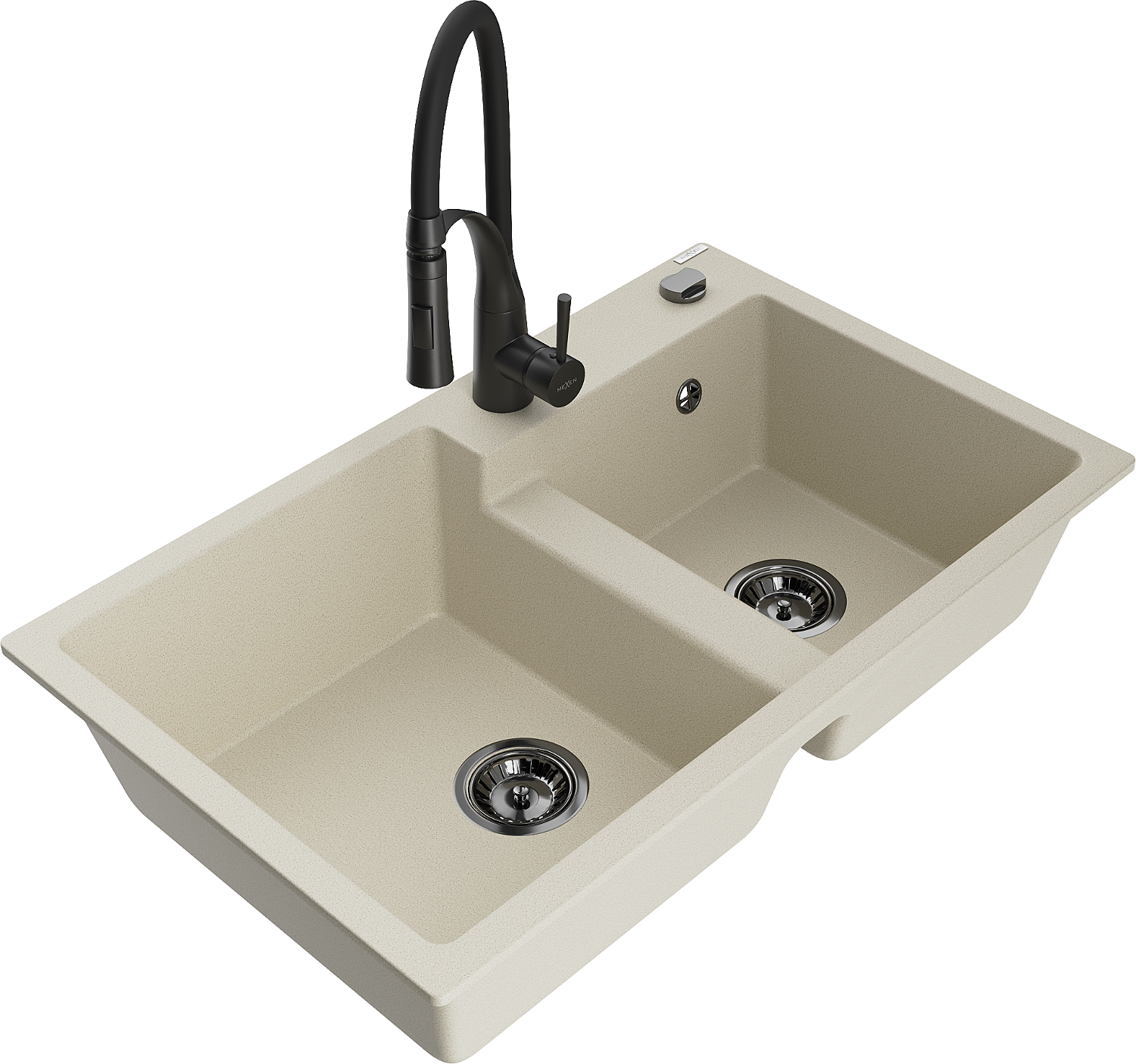 Mexen Tomas granitový dvojkomorový drez s kuchynskou batériou Aster, béžový - 6516-69-73450-70-B