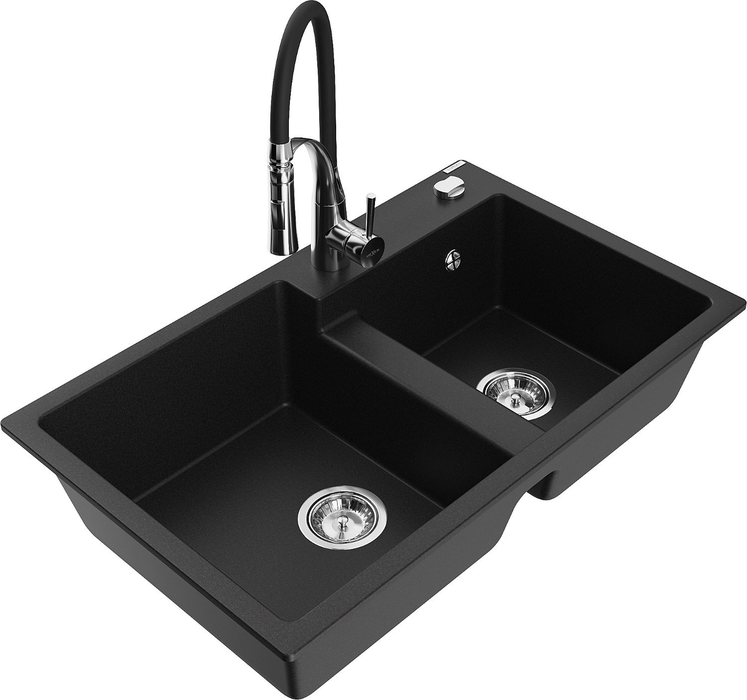 Mexen Tomas žulový drez 2-komorový s kuchynskou batériou Aster, čierny - 6516-77-73450-07