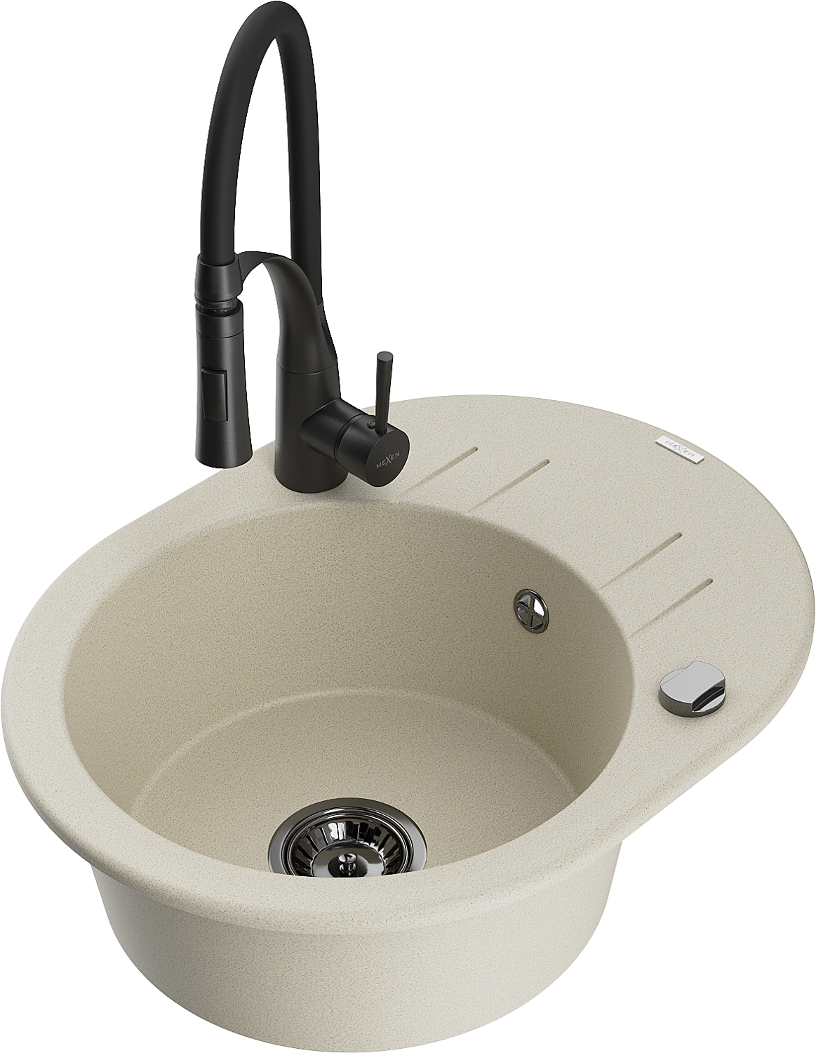 Mexen Kevin žulový 1-komorový drez s odkvapkávačom a kuchynskou batériou Aster, béžový - 6517-69-73450-70-B