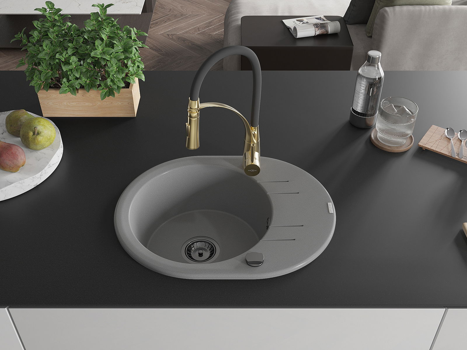 Povrch umývadla je odolný voči škvrnám a sfarbeniu, vďaka čomu sa ľahko čistí a zachováva si svoju farbu po dlhú dobu. Estetický a prakticky dopĺňajúci každú kuchyňu.
