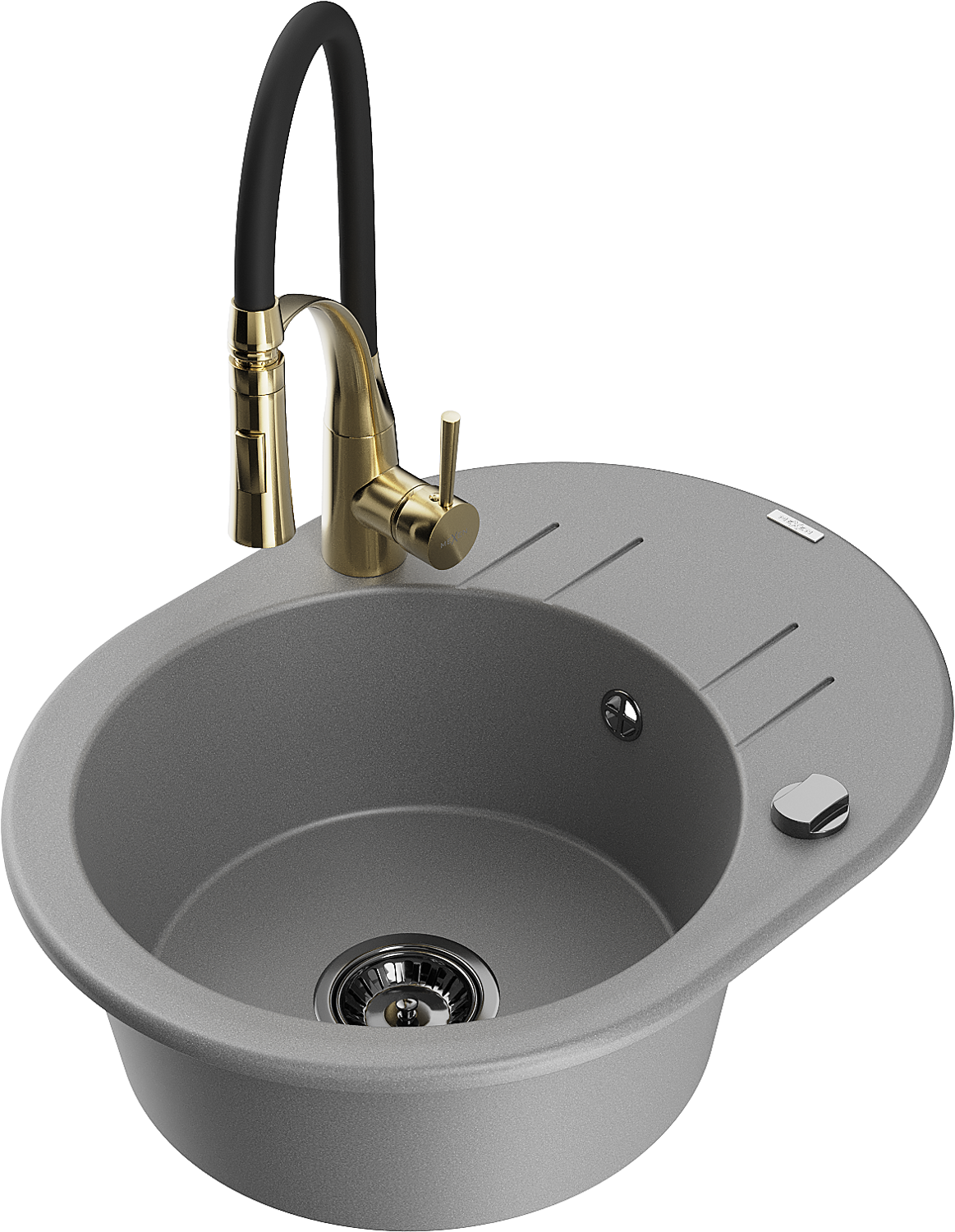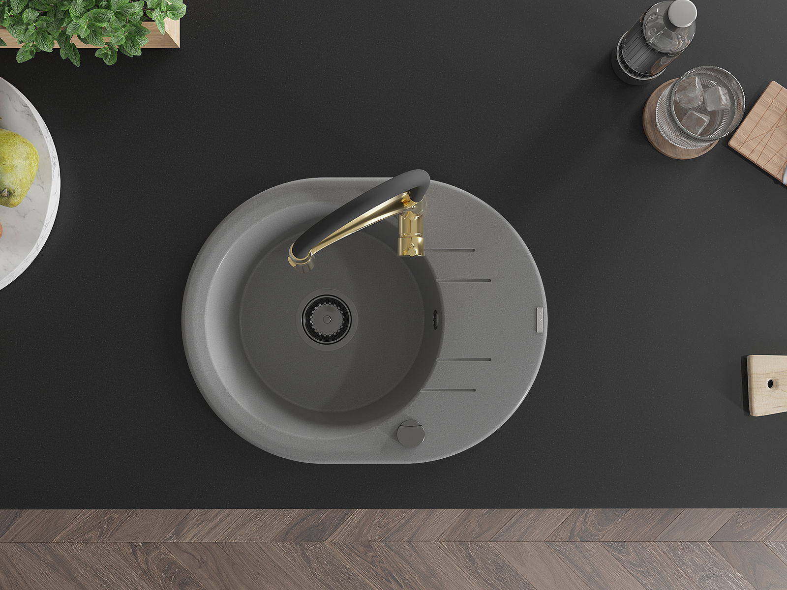 Mexen Kevin žulový kuchynský drez s 1 komorou, odkvapkávačom a kuchynskou batériou Aster, šedý - 6517-71-73450-57-B