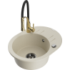 Povrch kuchynského drezu je odolný voči škvrnám a zafarbeniu, vďaka čomu sa ľahko udržiava a zachováva svoju farbu počas dlhého obdobia používania. Estetický a praktický doplnok pre každú kuchyňu.