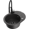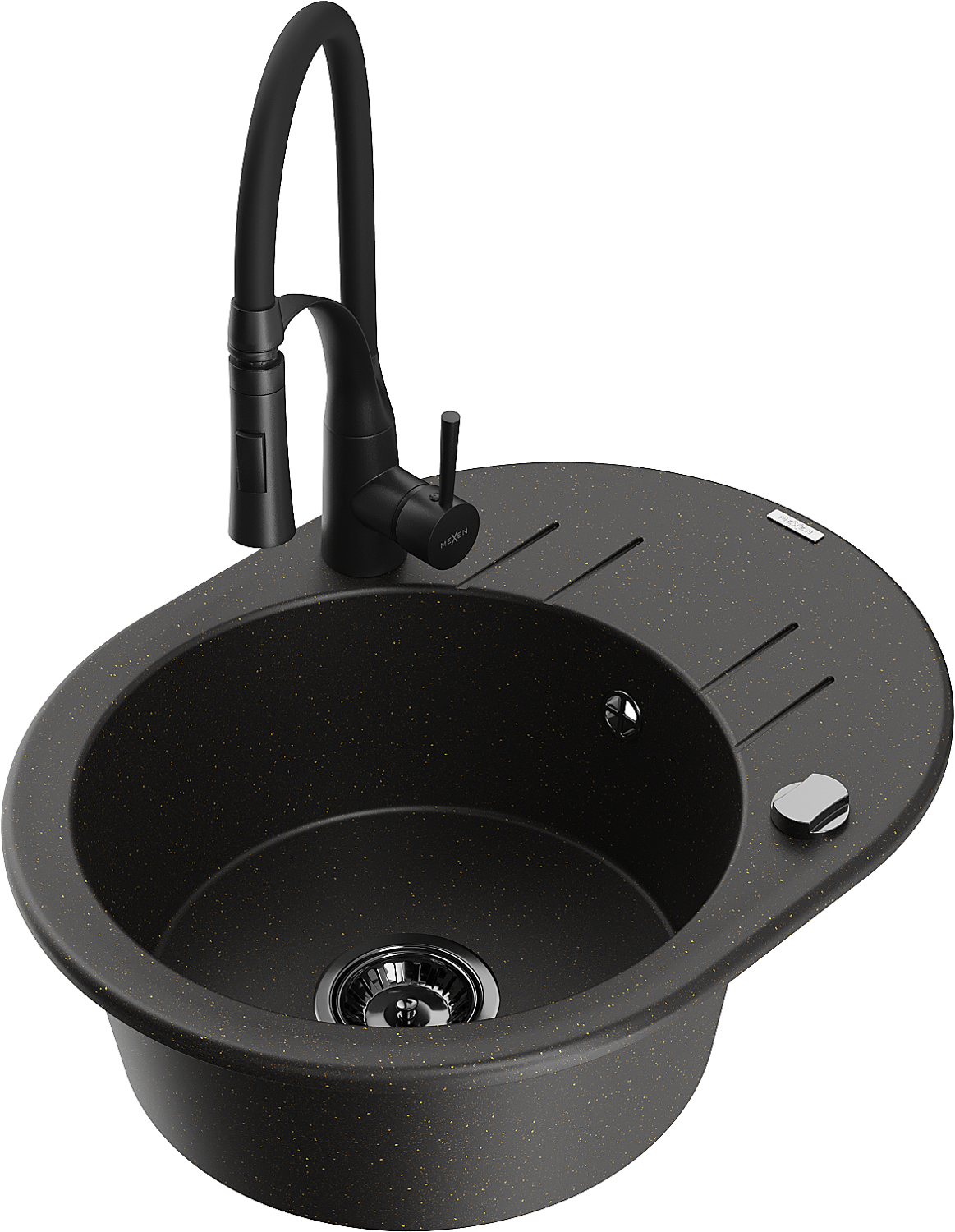 Mexen Kevin granitový drez s 1 komorou s odkvapkávačom a kuchynskou batériou Aster, čierny/zlatý metalický