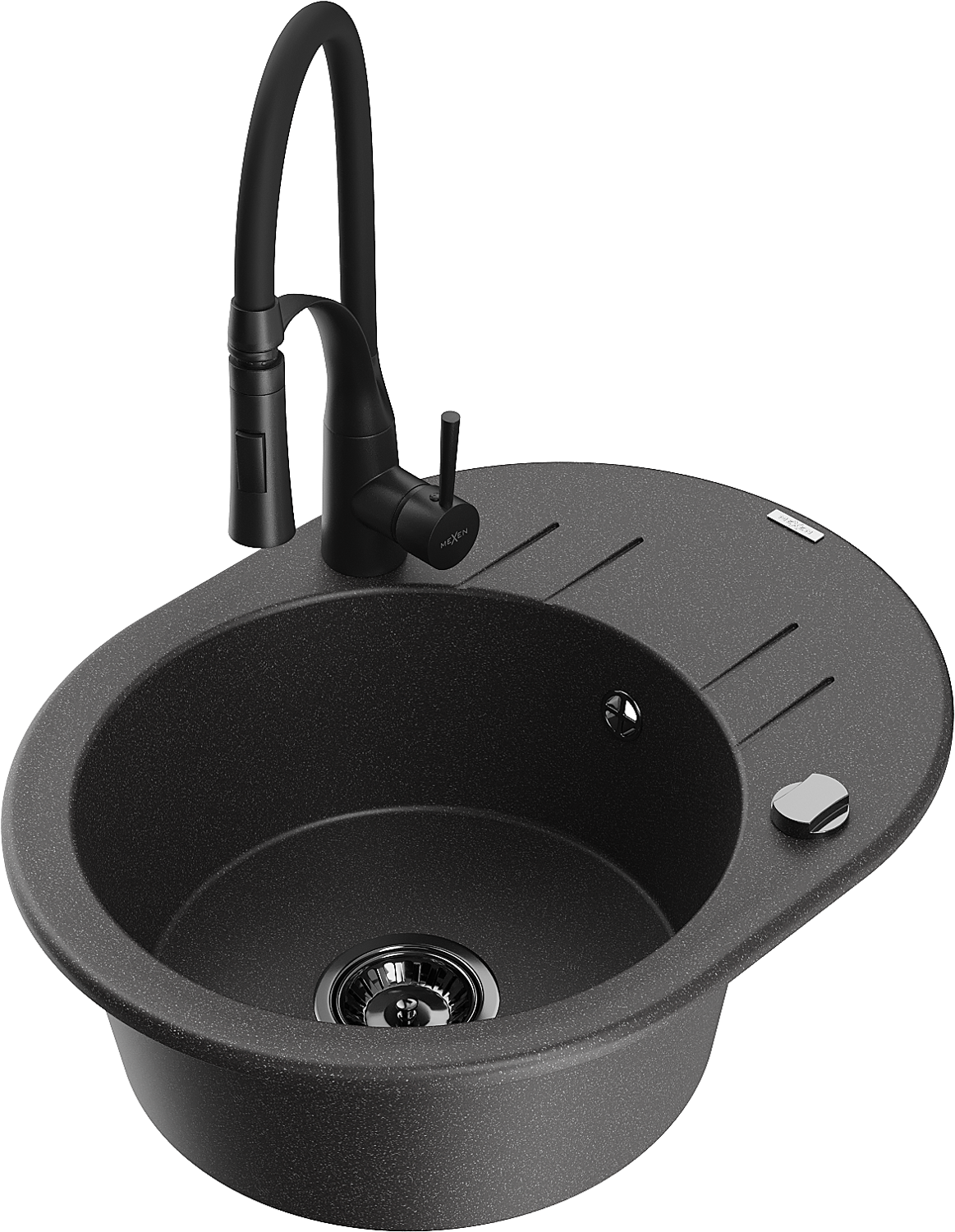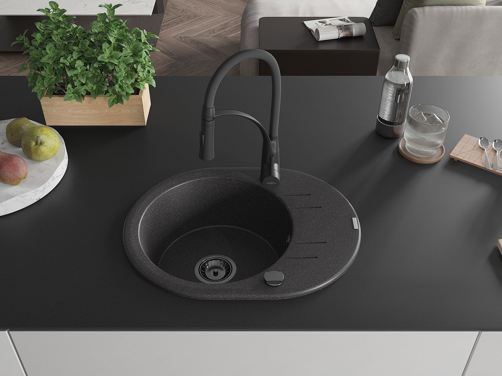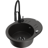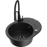 Mexen Kevin granitový drez 1-komorový s odkvapkávačom a kuchynskou batériou Aster, čierny šplachovaný - 6517-76-73450-70-B