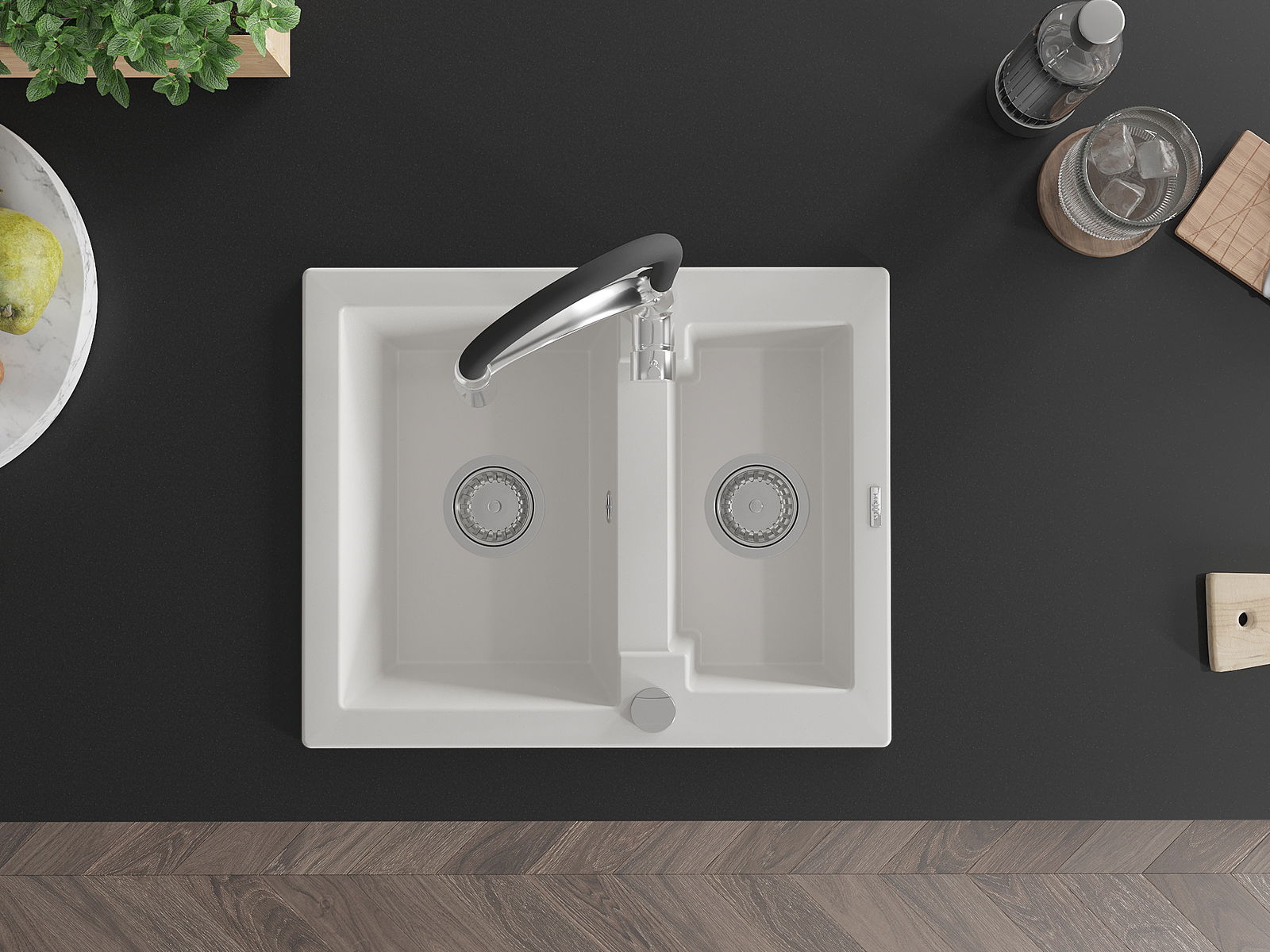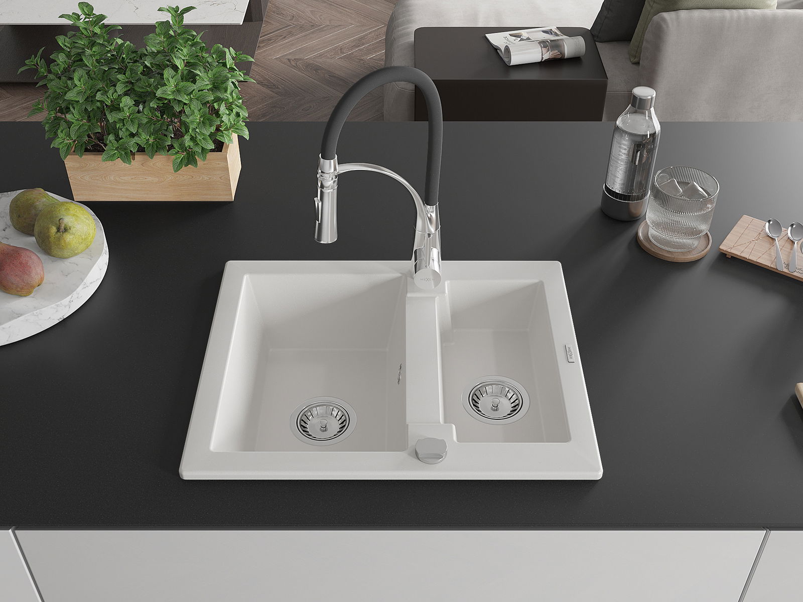 Povrch umývadla je odolný voči škvrnám a sfarbeniu, vďaka čomu sa ľahko čistí a zachováva si svoju farbu po dlhú dobu. Estetický a prakticky dopĺňajúci každú kuchyňu.