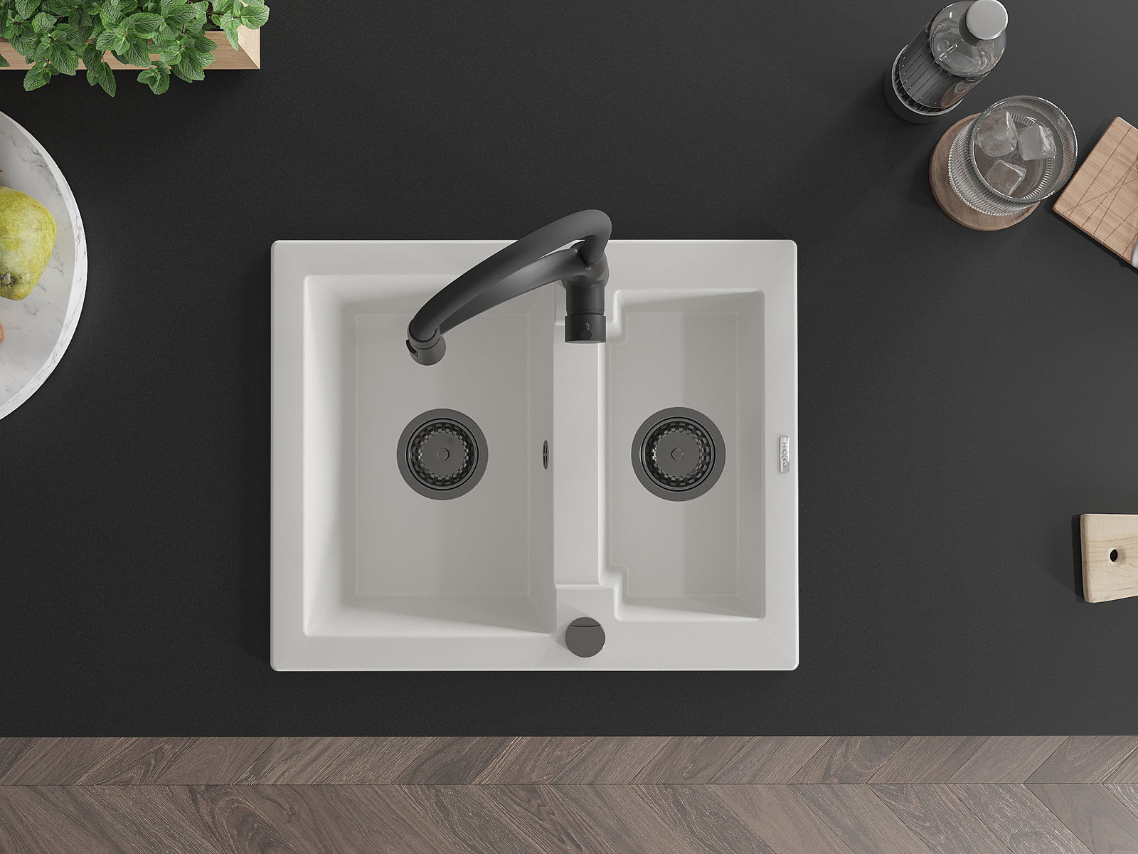 Povrch umývadla je odolný voči škvrnám a sfarbeniu, vďaka čomu sa ľahko čistí a zachováva si svoju farbu po dlhú dobu. Estetický a prakticky dopĺňajúci každú kuchyňu.