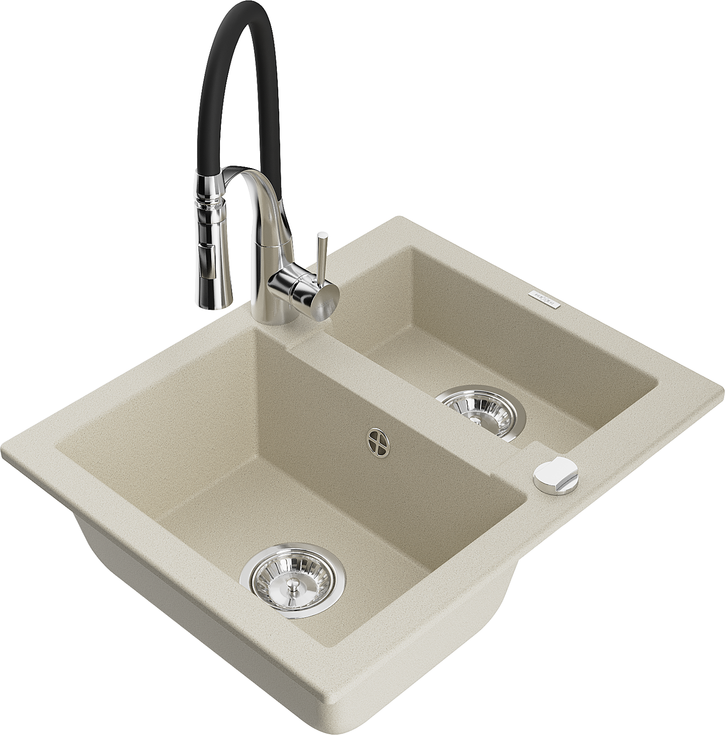 Mexen Carlos žulový drez 1,5-komorový s kuchynskou batériou Aster, béžový - 6518-69-73450-07