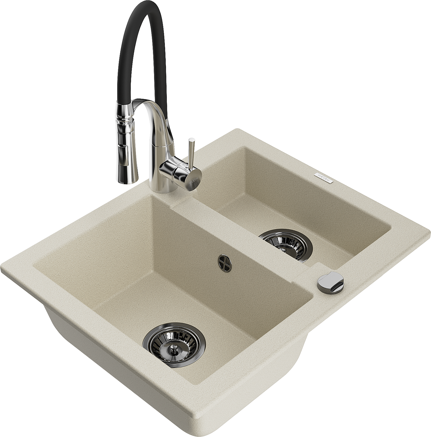 Mexen Carlos granitový drez 1,5-komorový s kuchynskou batériou Aster, béžový - 6518-69-73450-07-B