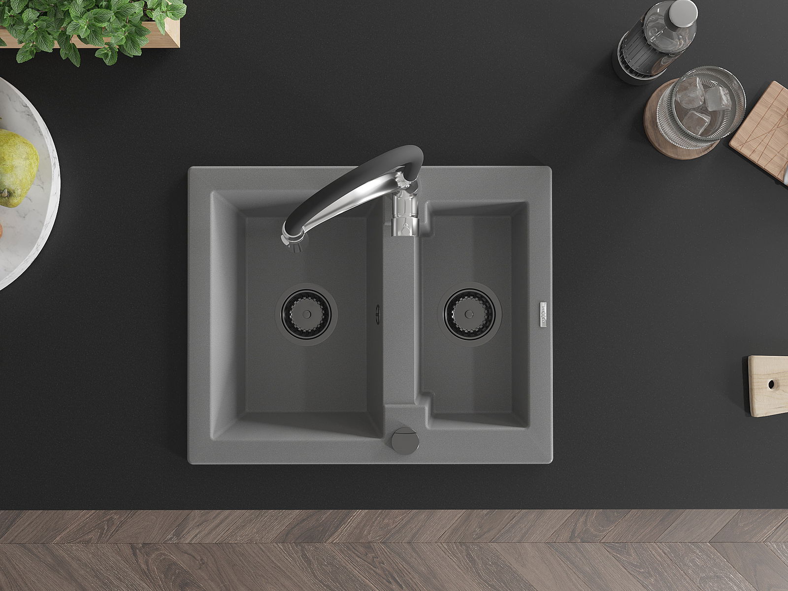 Povrch umývadla je odolný voči škvrnám a sfarbeniu, vďaka čomu sa ľahko čistí a zachováva si svoju farbu po dlhú dobu. Estetický a prakticky dopĺňajúci každú kuchyňu.