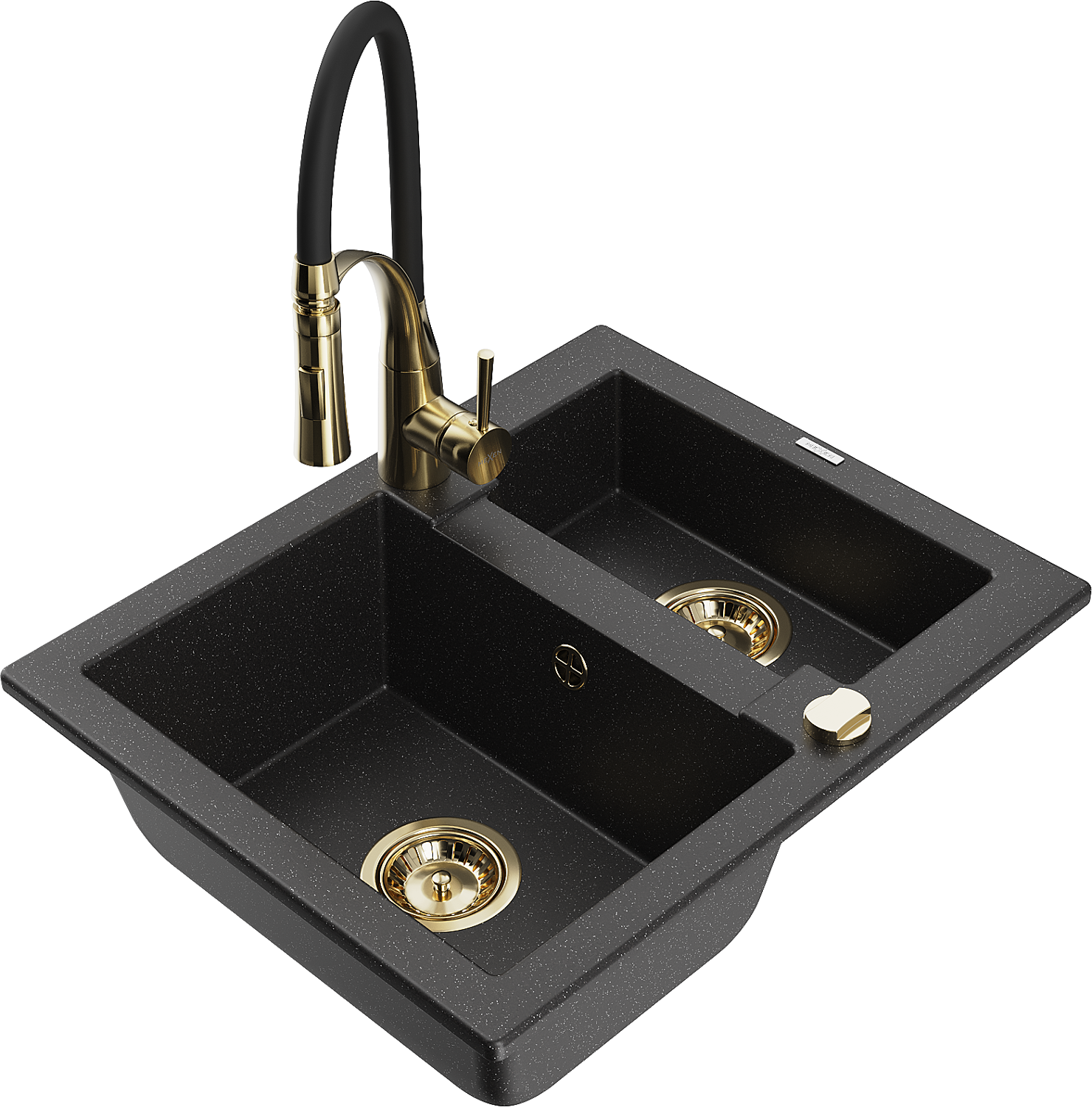 Mexen Carlos granitový drez 1,5-komorový s kuchynskou batériou Aster, čierny/strieborný metalik - 6518-73-73450-57-G