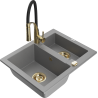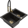 Mexen Carlos žulový drez 1,5-komorový s kuchynskou batériou Aster, čierny/strieborný metalický - 6518-73-73450-57-B