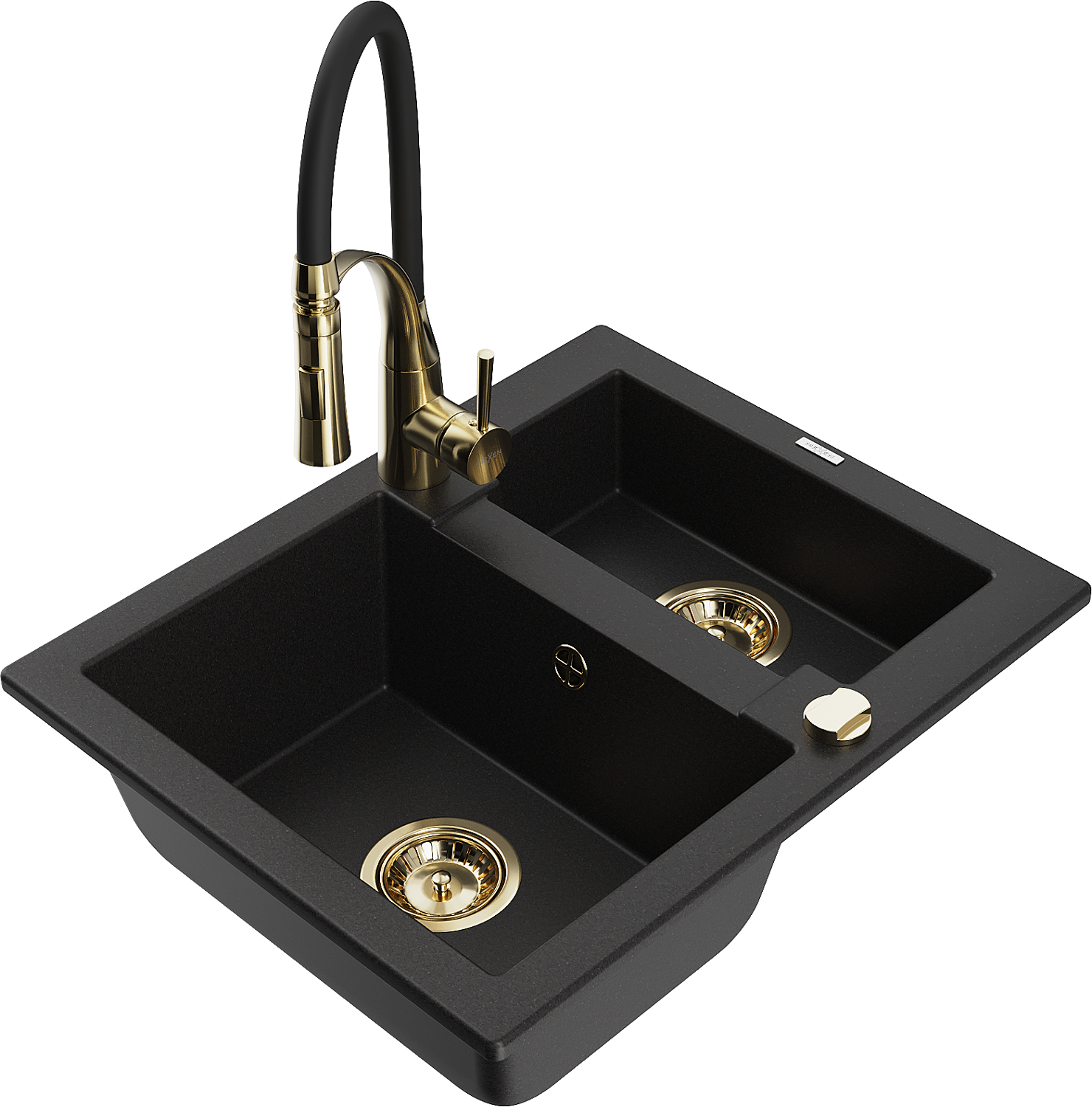 Mexen Carlos granitový kuchynský drez 1,5-komorový s kuchynskou batériou Aster, čierny - 6518-77-73450-57-G